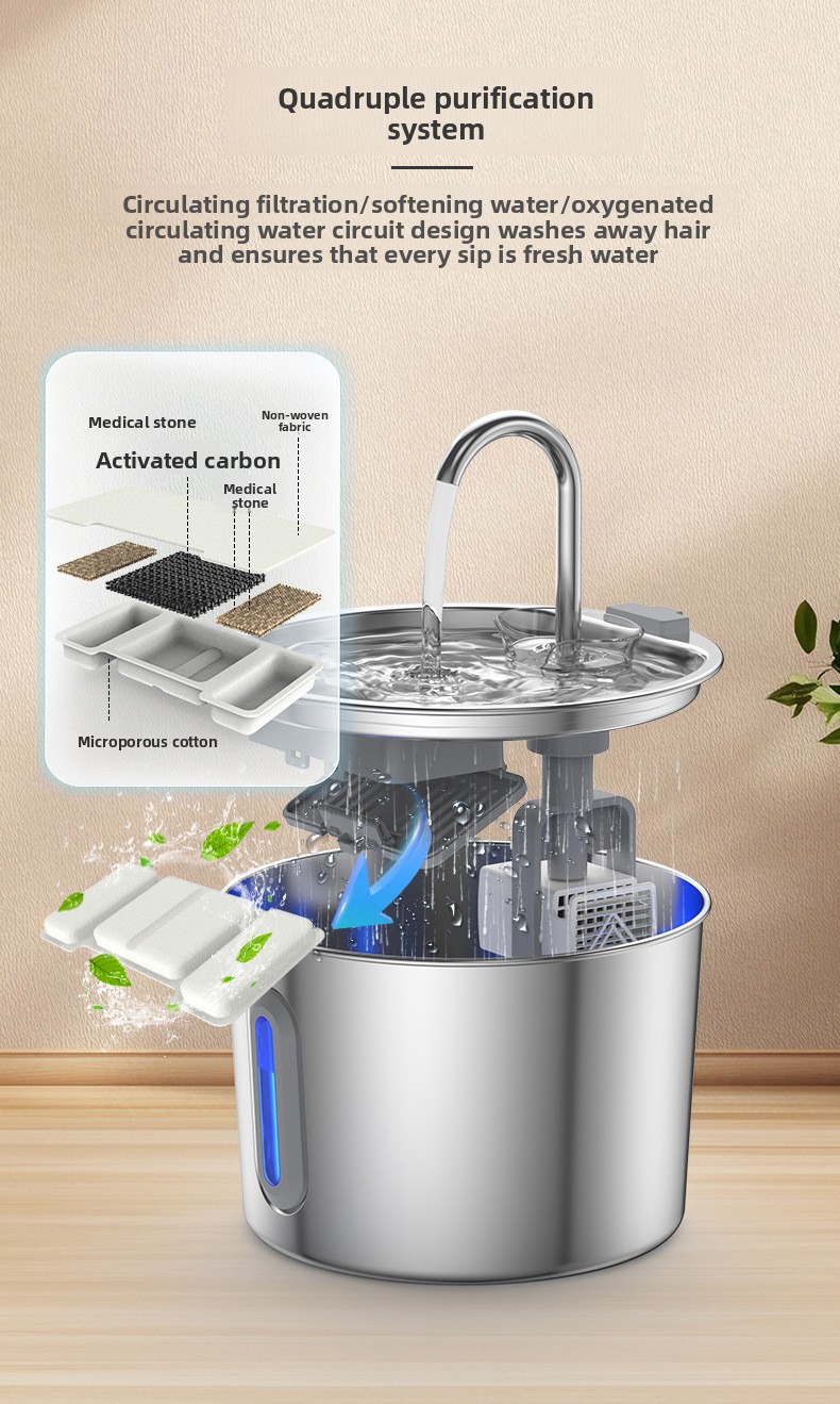 Automatic Water Flow: Features an automatic water circulation system to keep water fresh and appealing for pets.