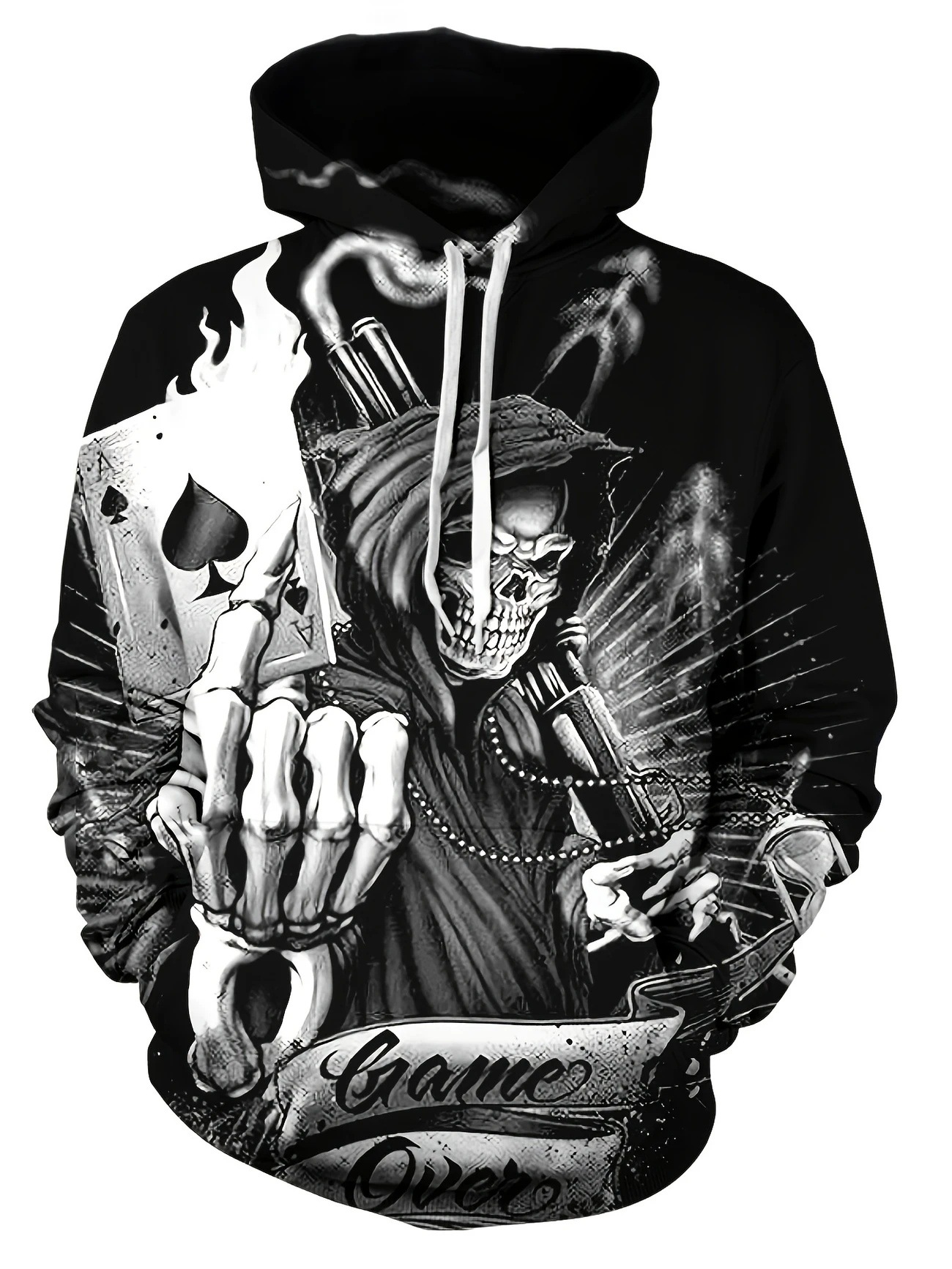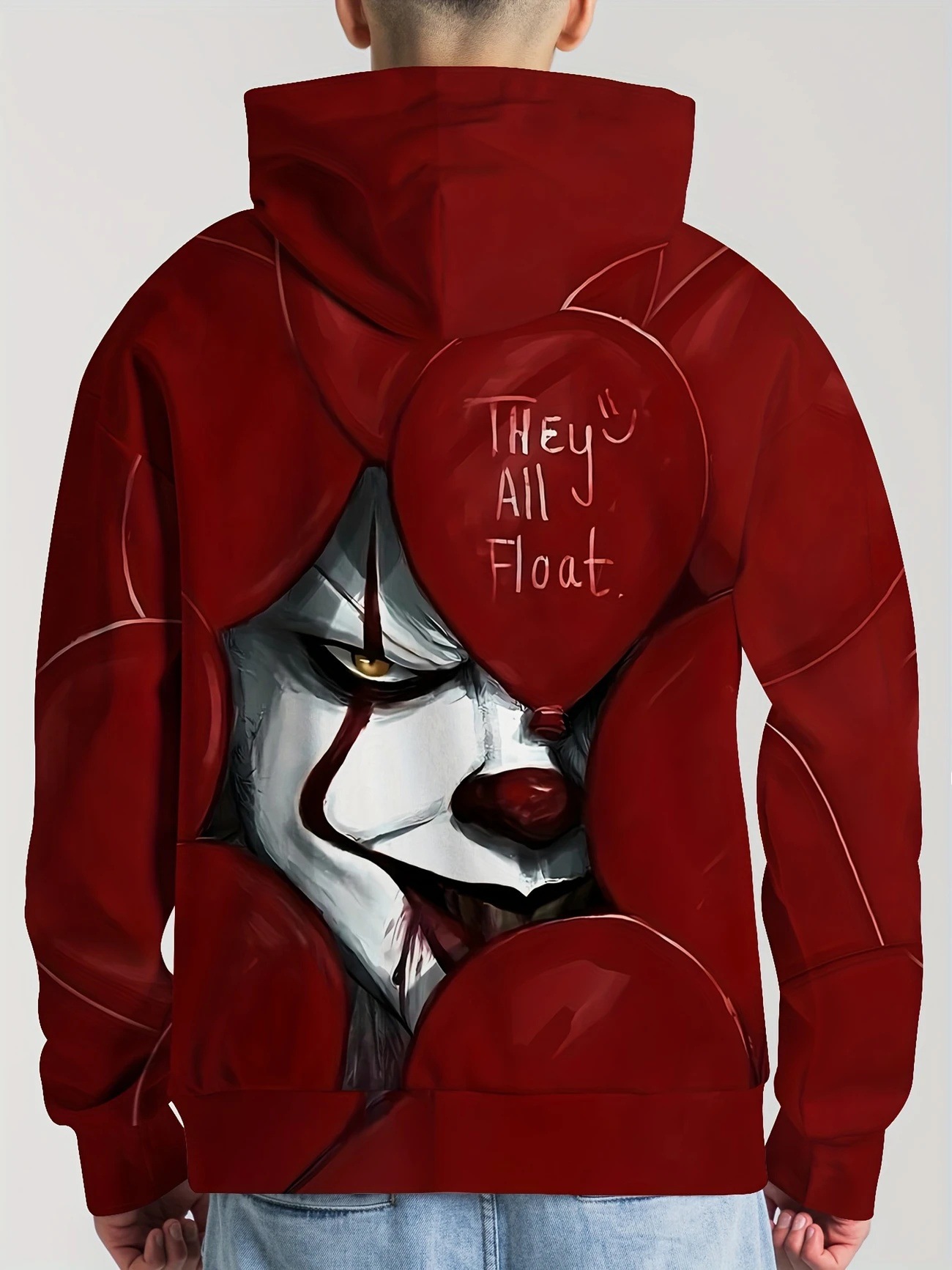 3D Printed Men's Hoodie Sweatshirt - Horror Theme Loose Fit Long Sleeve