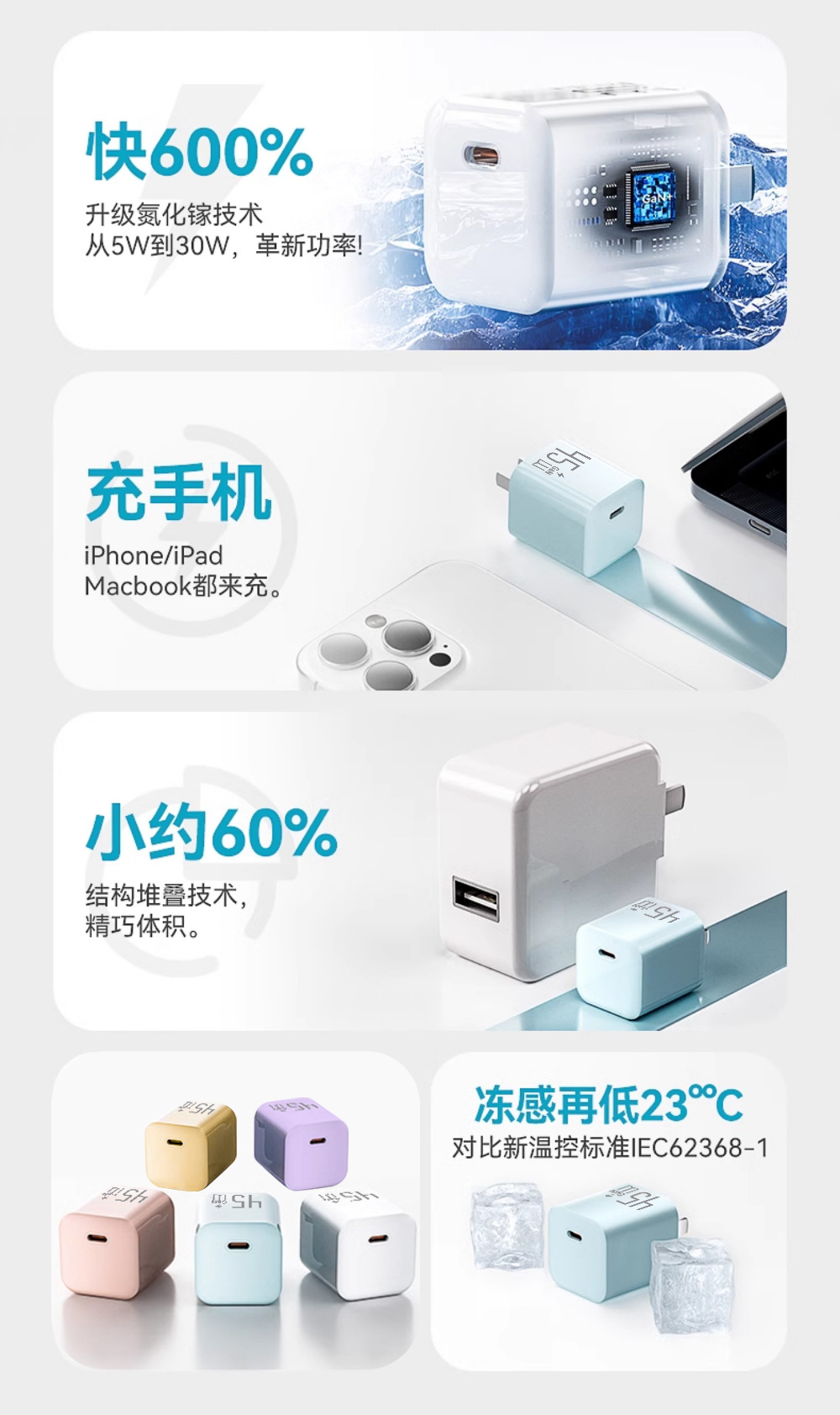 Gallium Nitride Technology: Utilizes advanced GaN tech for efficient and fast charging.