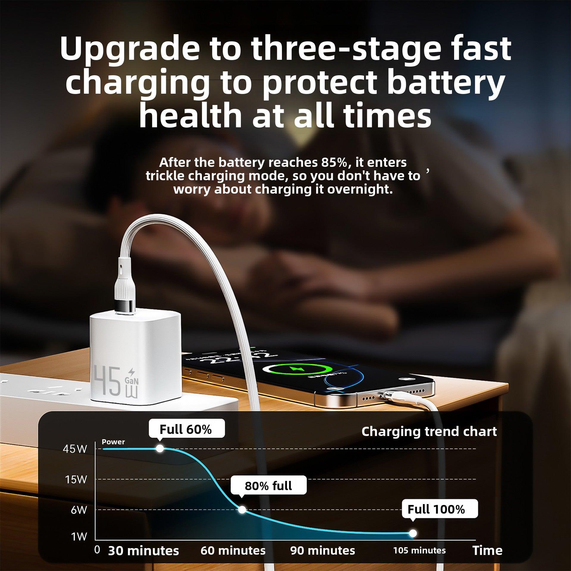 45W Fast Charging: Delivers rapid charging for compatible devices.
