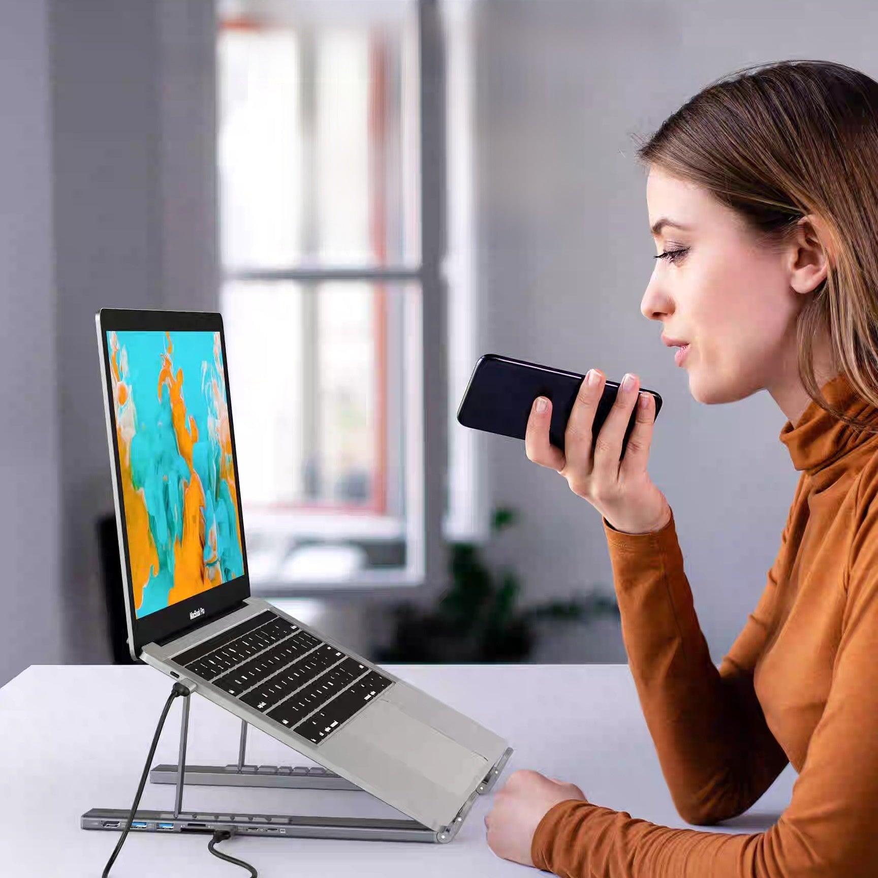 Multi-Function Adjustable Stand: Combines a laptop stand and docking station for versatile use.