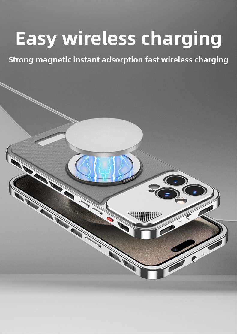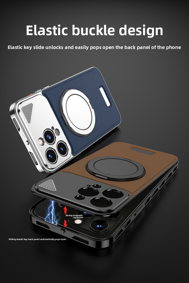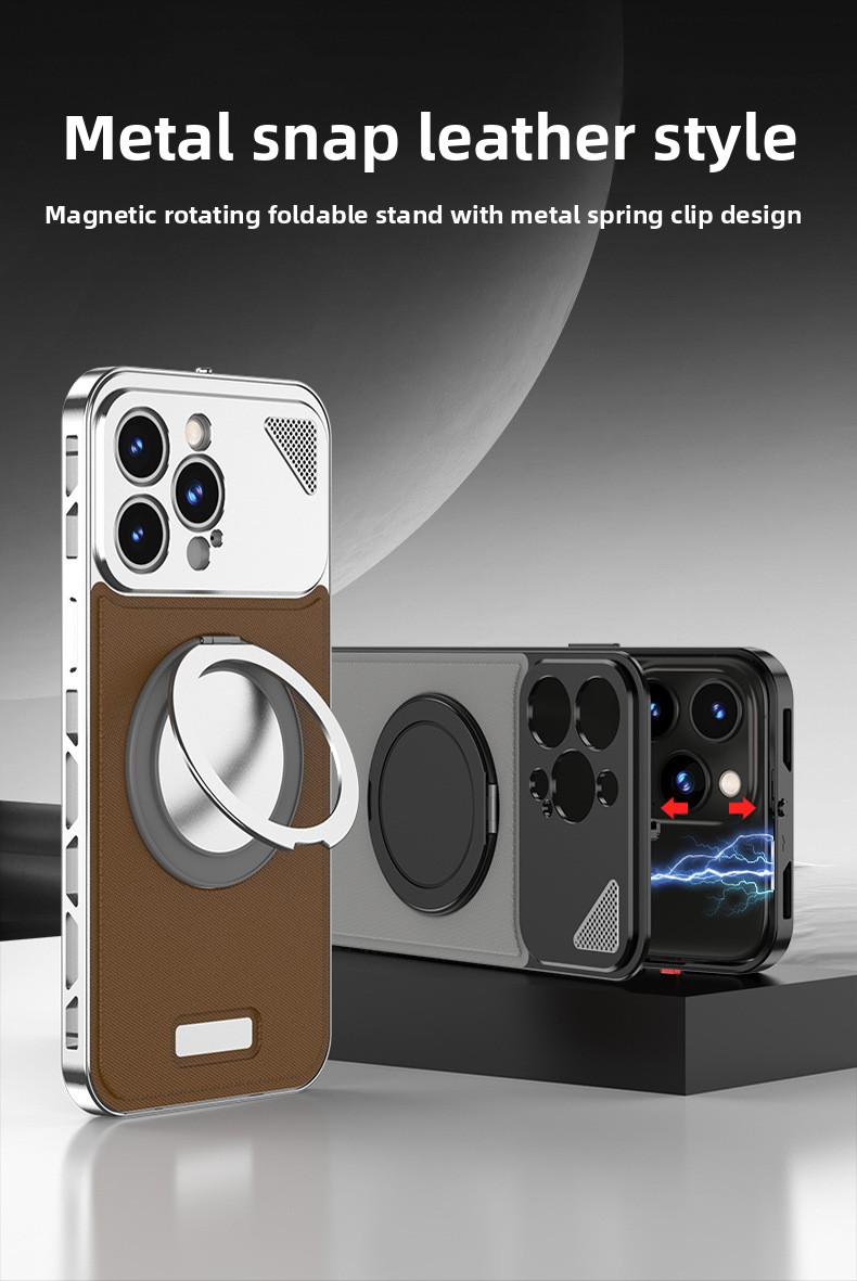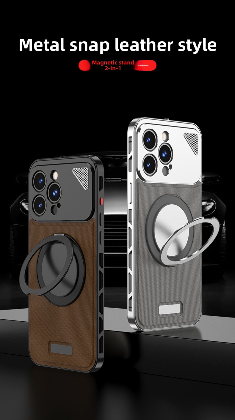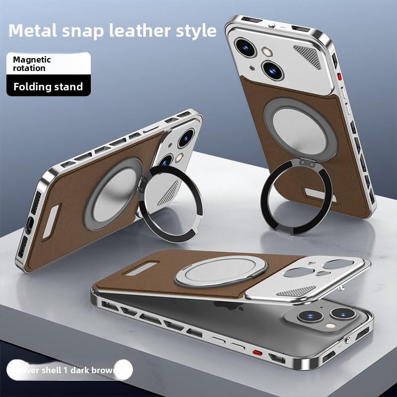 Aluminum Alloy Nappa Leather Magnetic Phone Case