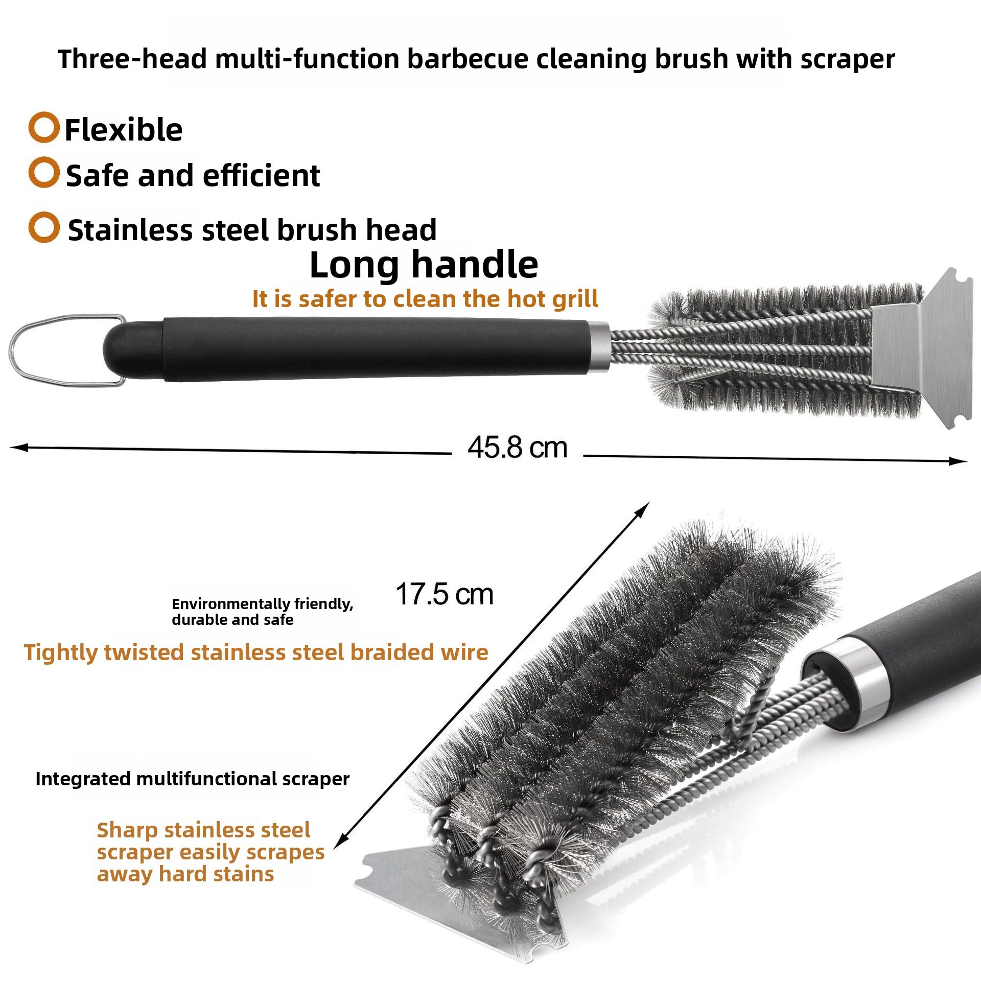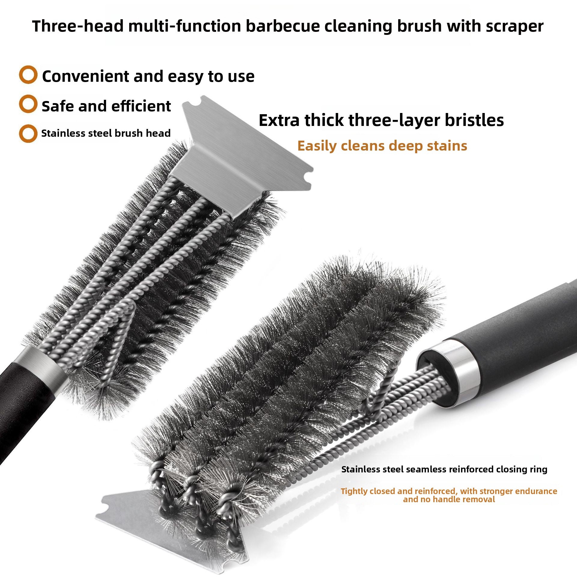 BBQ Grill Cleaning Brush - Stainless Steel Three-Head