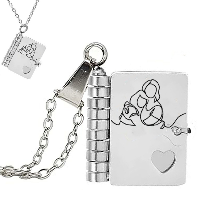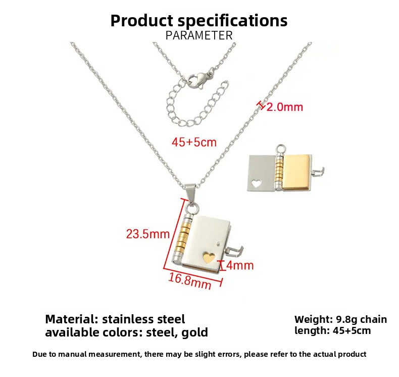 Color Options: Steel, gold, or steel + gold book pendant with engraving.