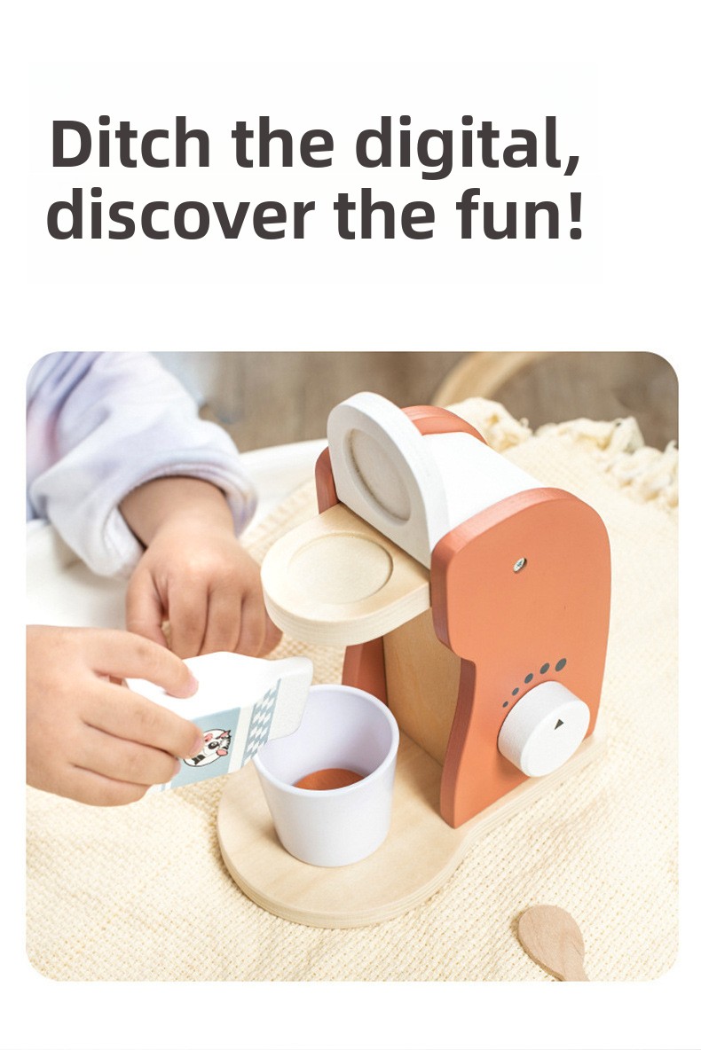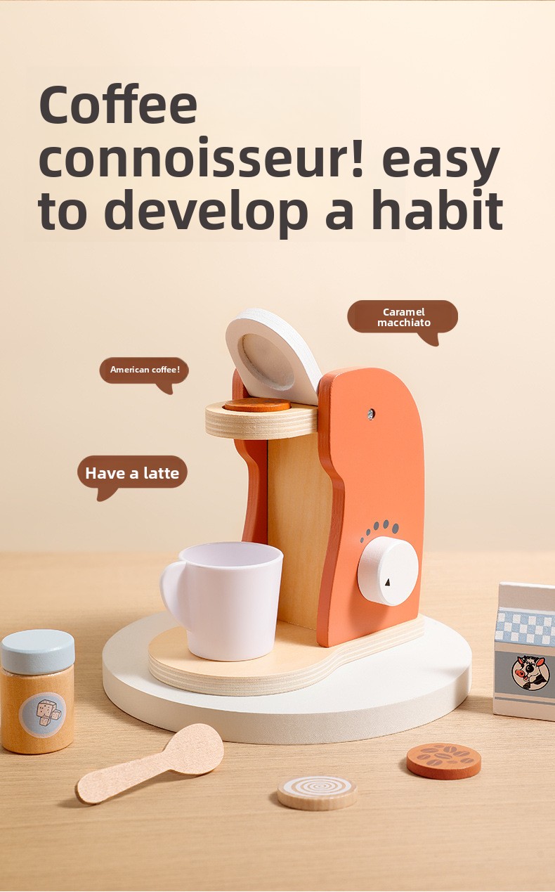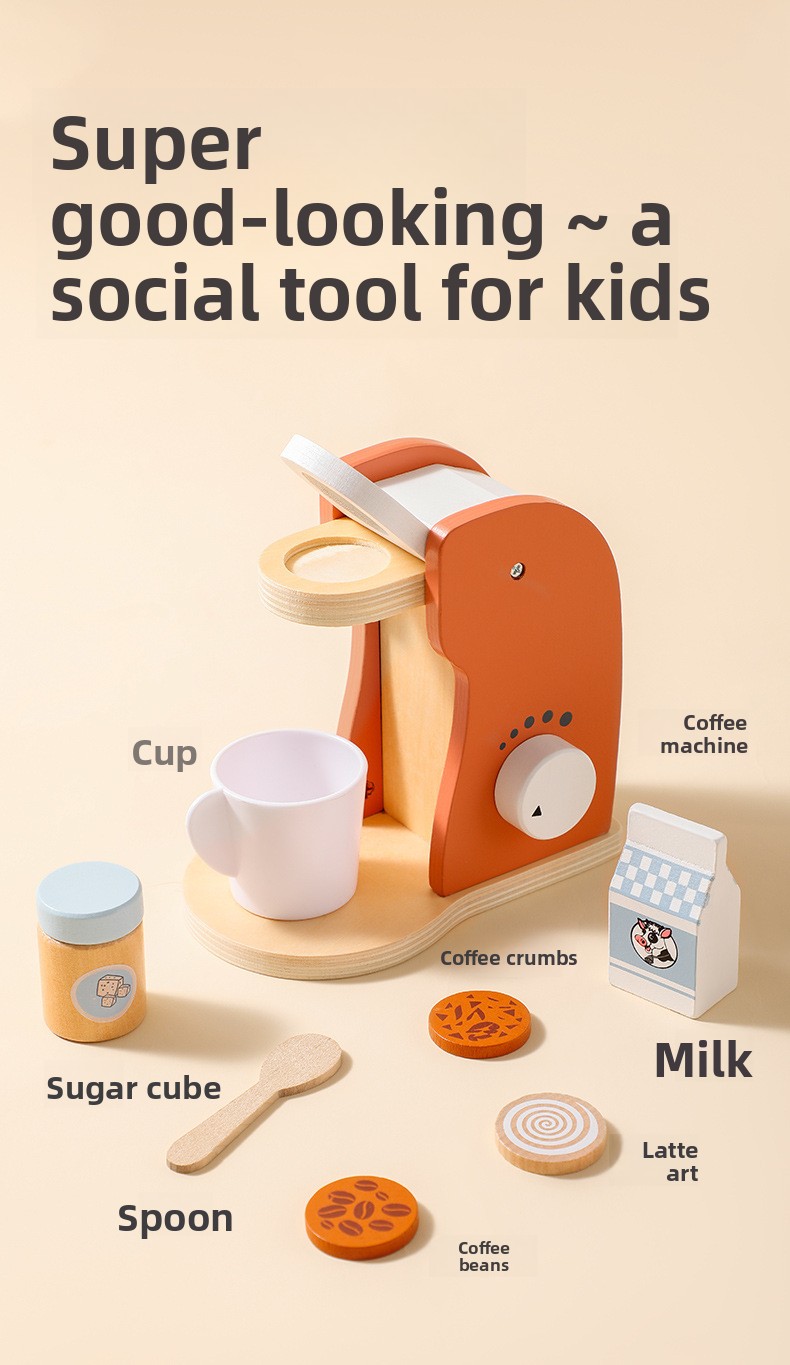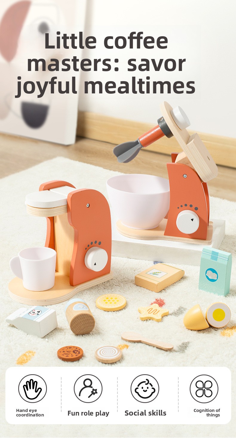 Simulated Wooden Coffee Machine & Blender: Realistic design for kids' pretend kitchen play.
