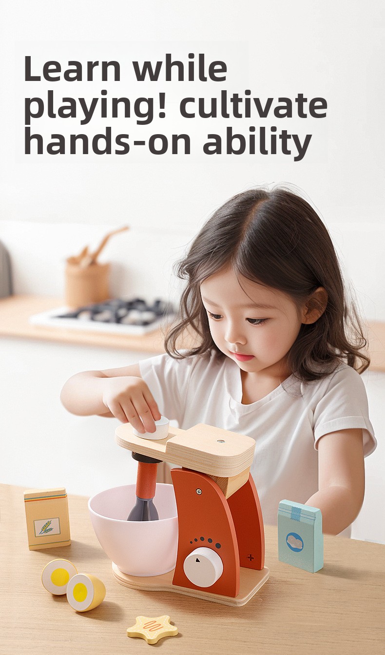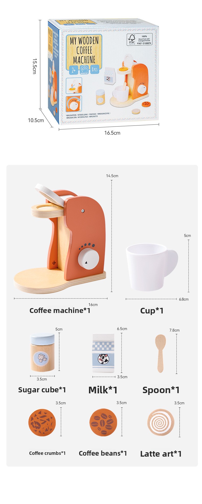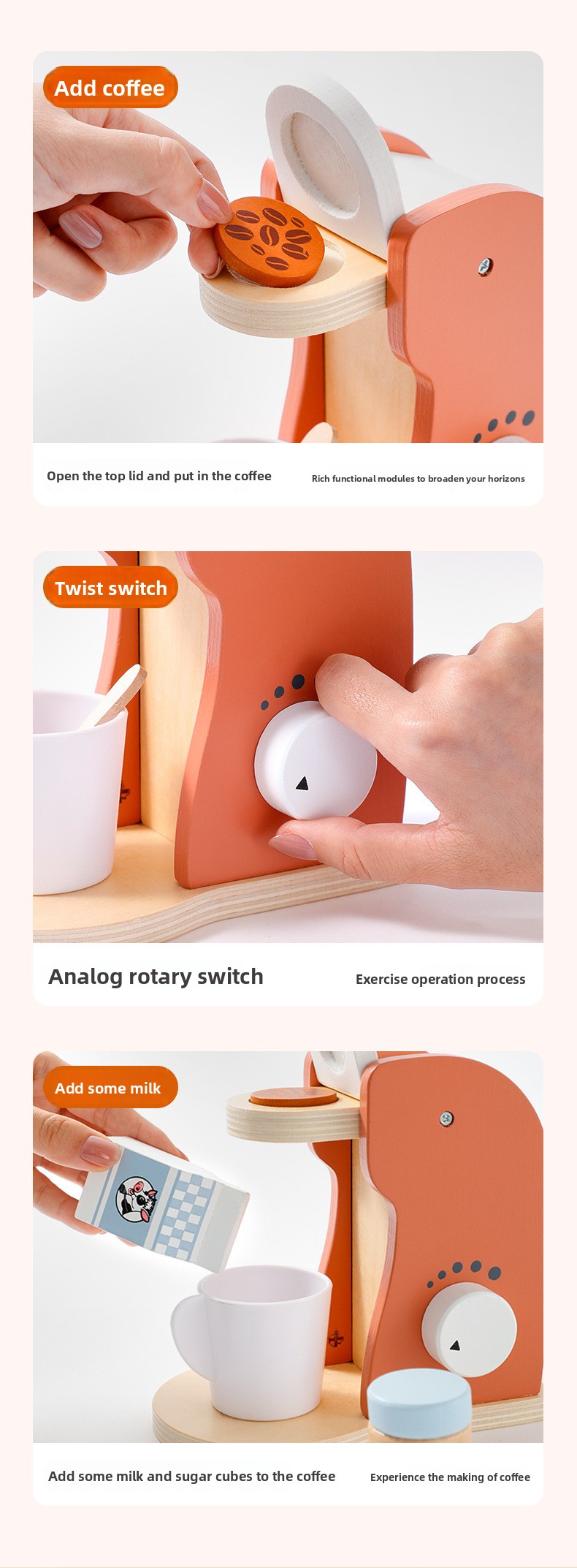 Simulated Wooden Coffee Machine & Blender: Realistic design for kids' pretend kitchen play.