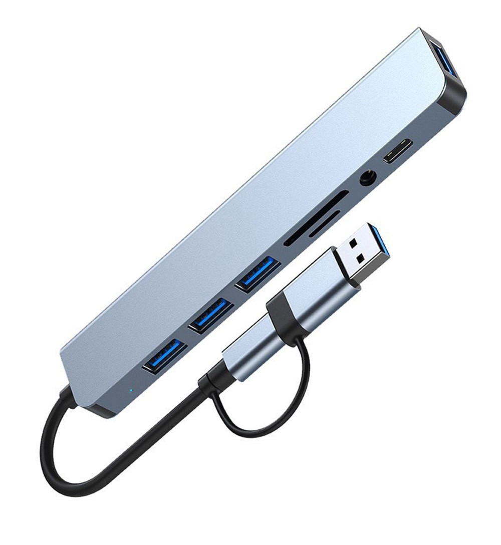 Multi-functional Hub: 8-in-1 expansion dock with card reader functionality.