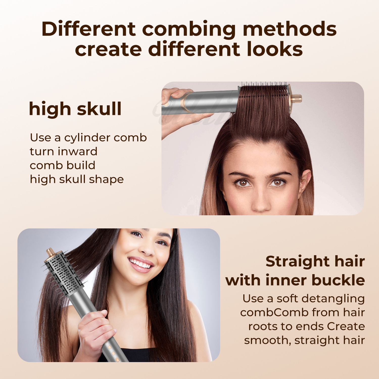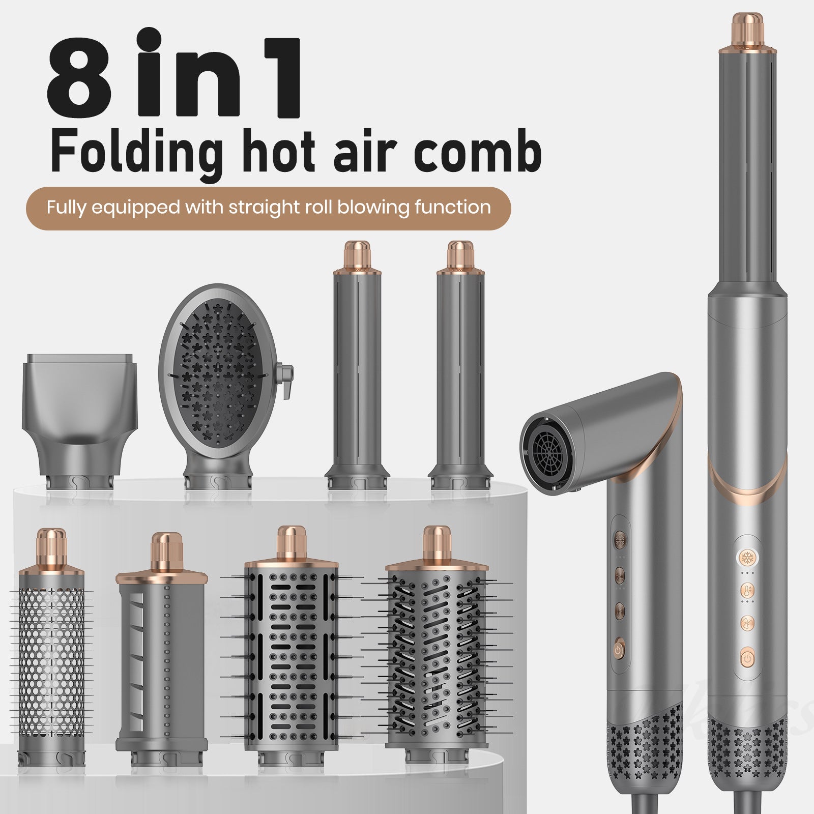 8-in-1 Multifunctional Design: Combines a hairdryer, hot air comb, and other styling tools for versatile use.