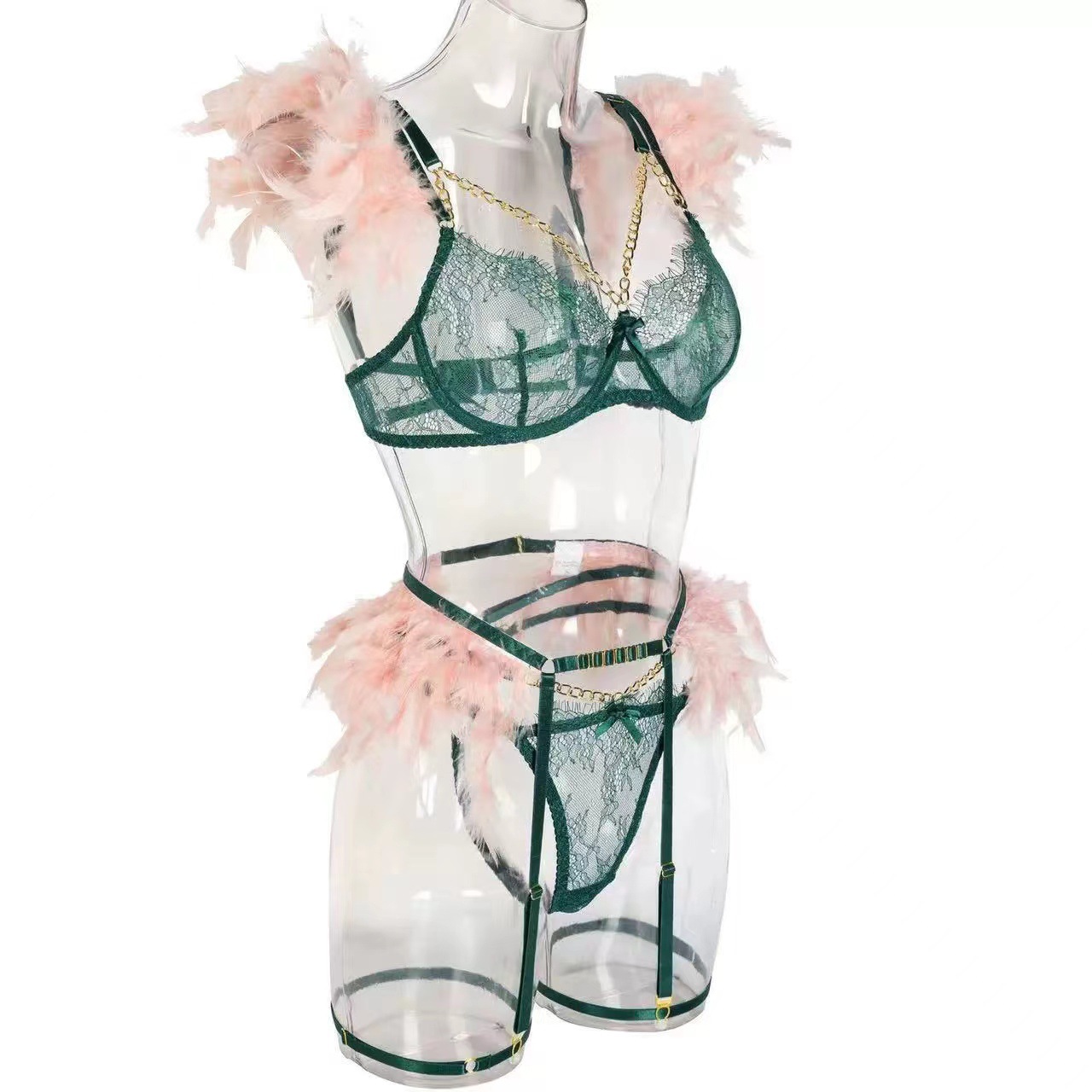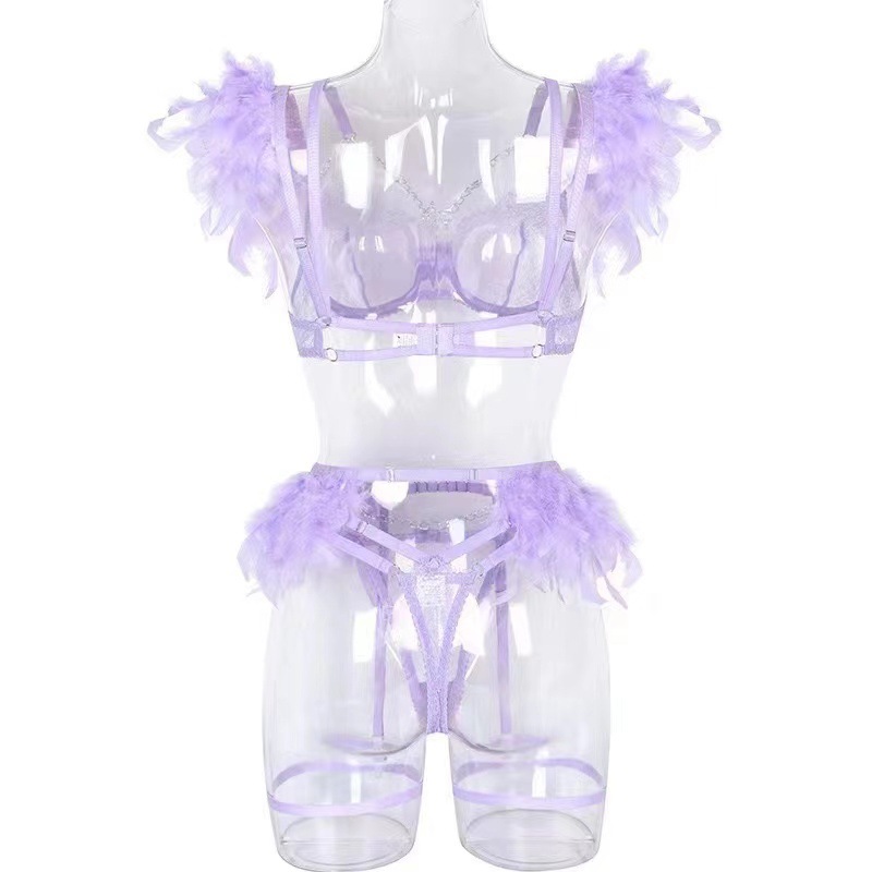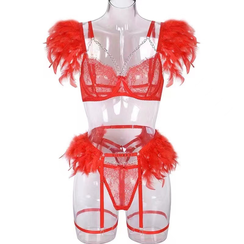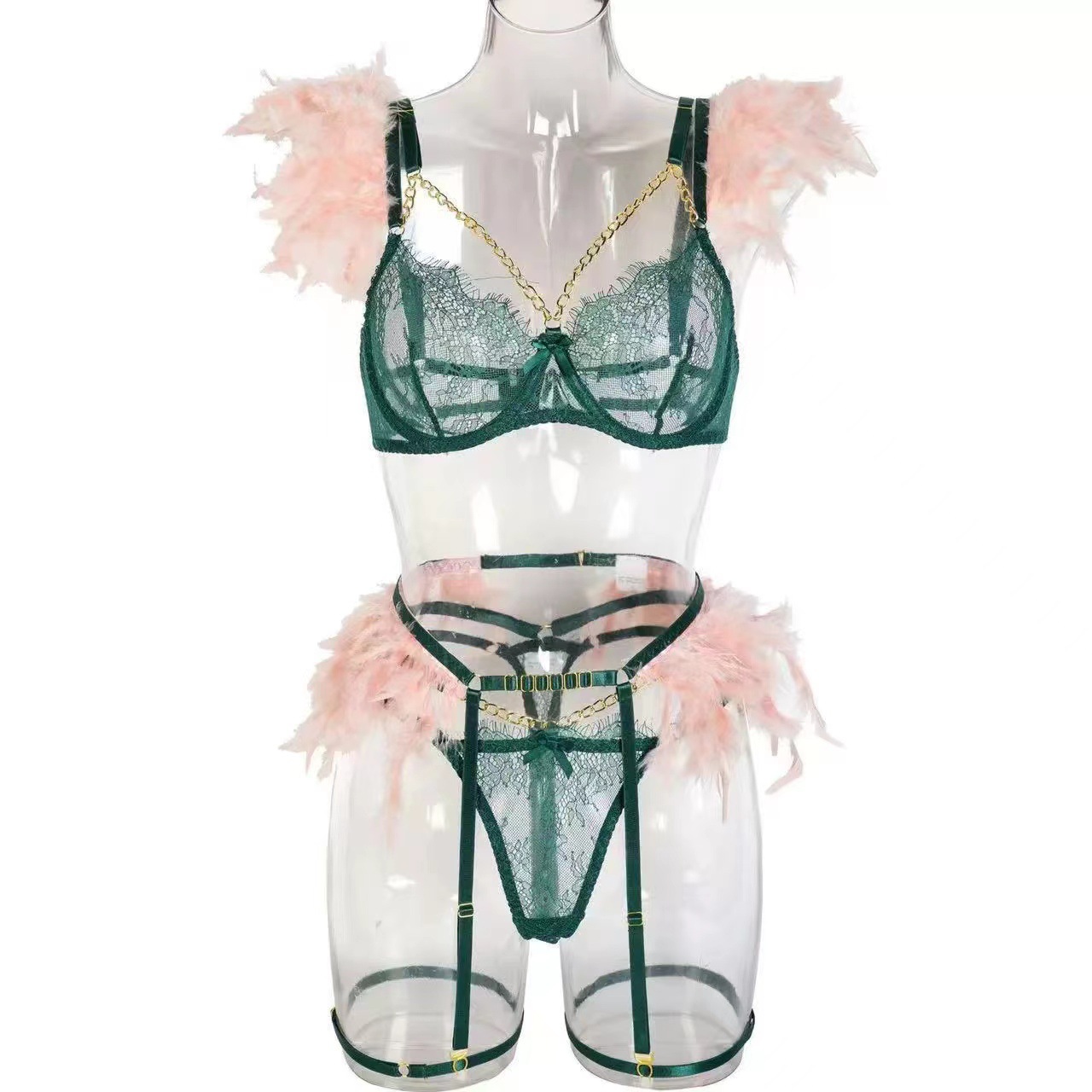Intricate Design: Features metal chains, lace, feather trims, and eyelash details for a unique look.