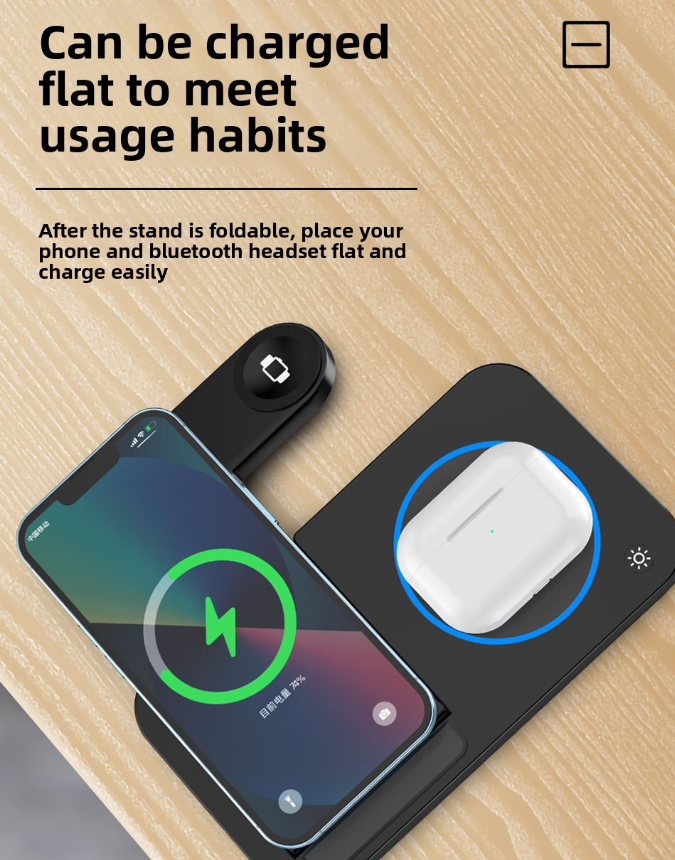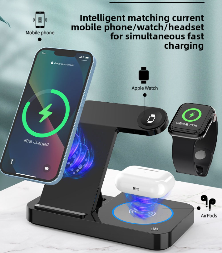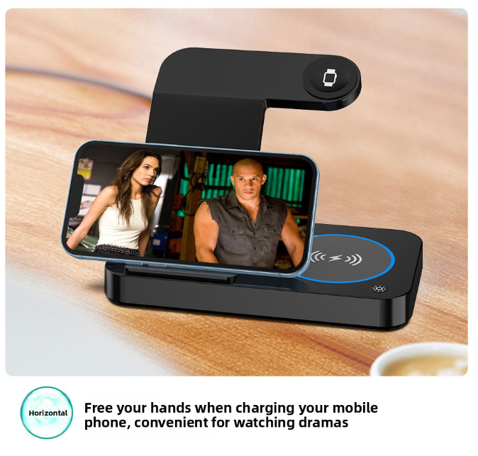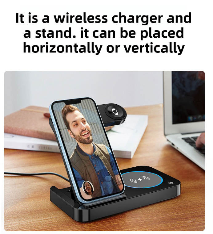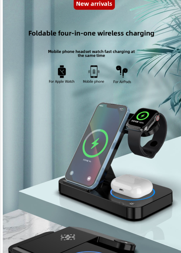 Four-in-One Functionality: Combines wireless charging for phones, watches, and other devices in one compact unit.
