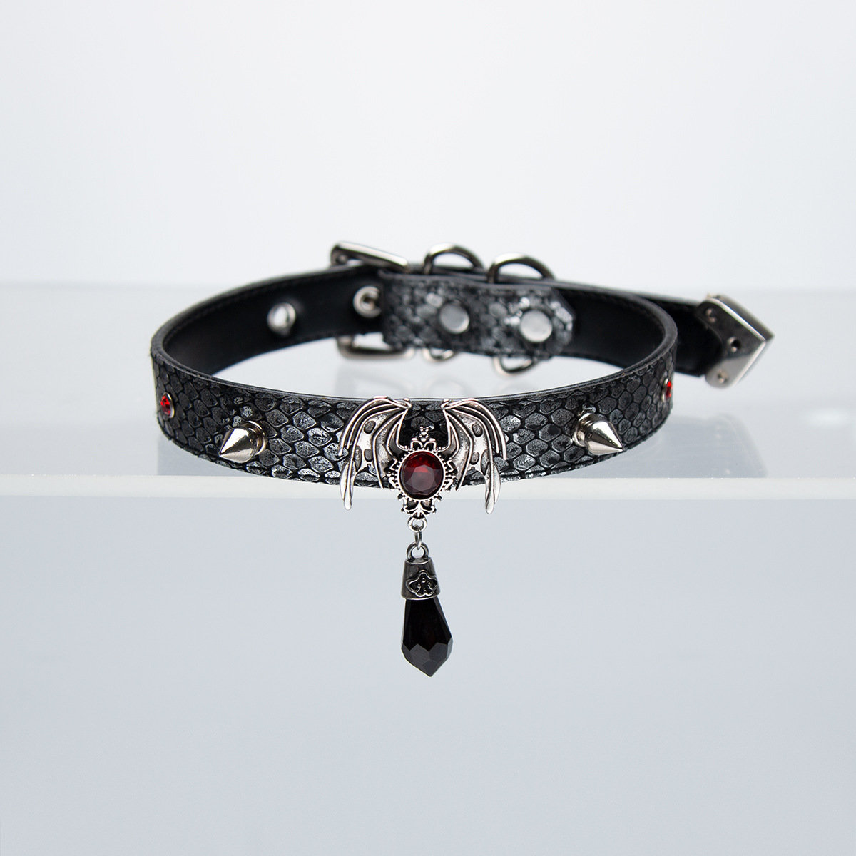 Gothic Punk Adjustable Choker Collar with Alloy Pendant