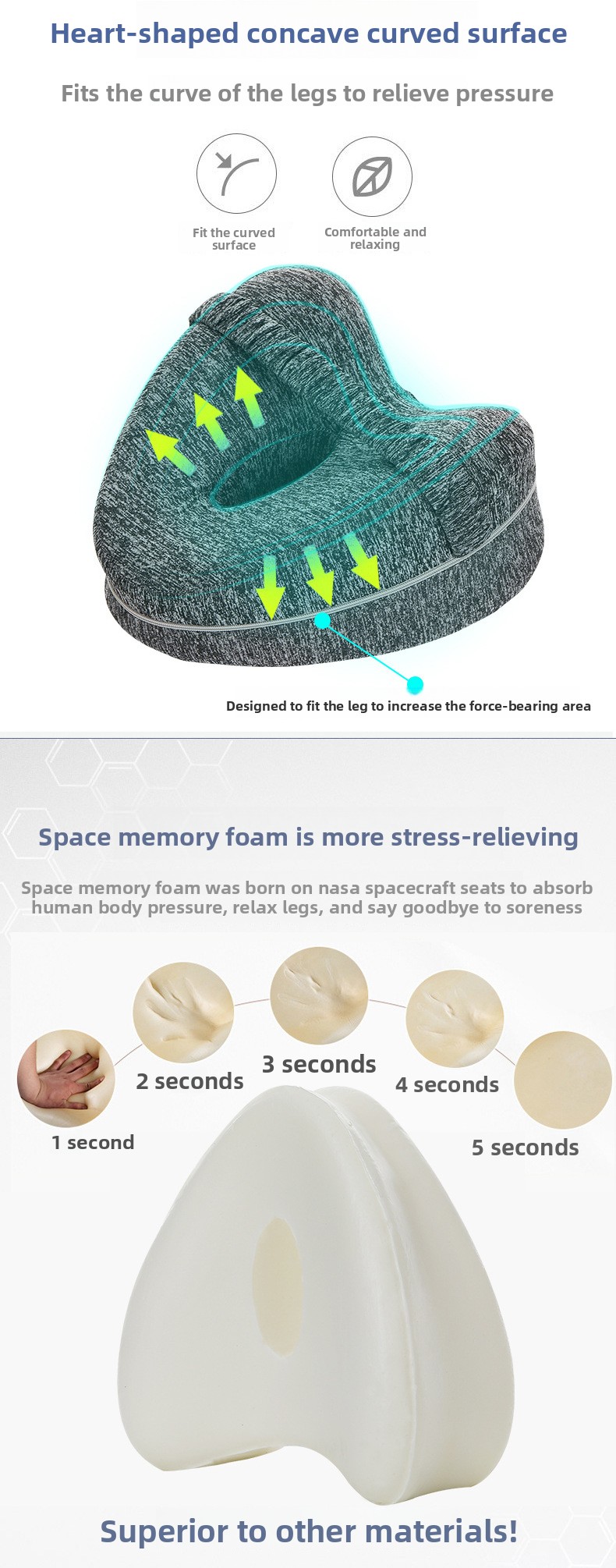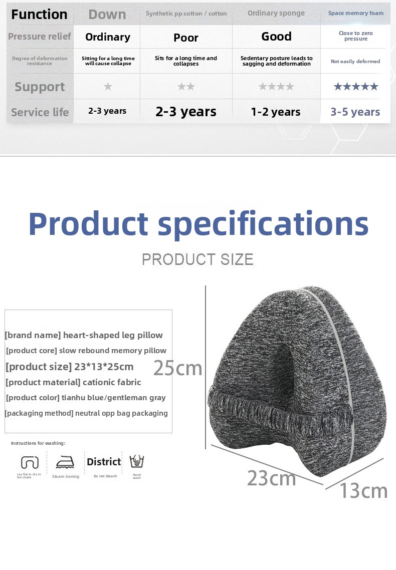 Memory Foam Material: Provides excellent support and pressure relief for legs and knees.