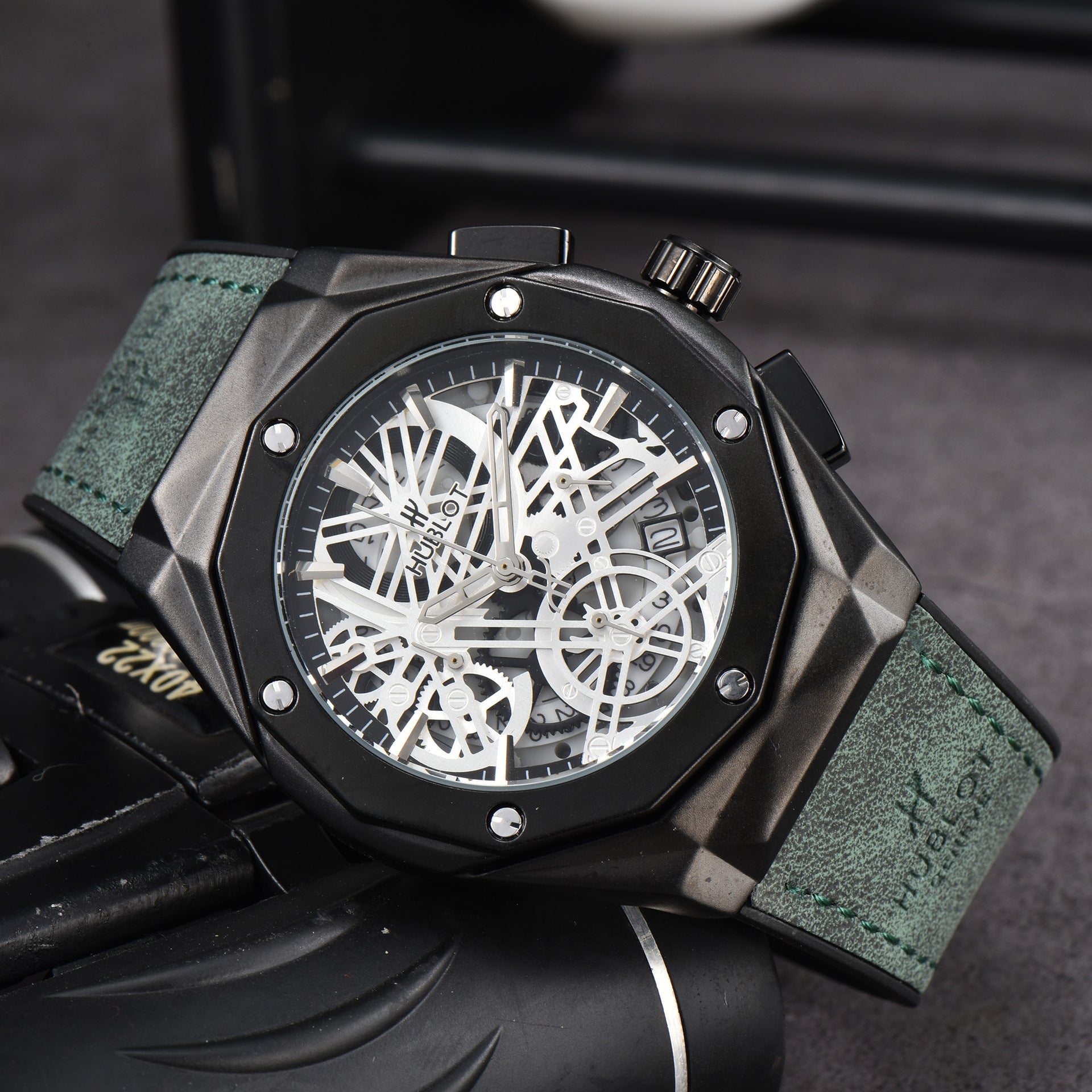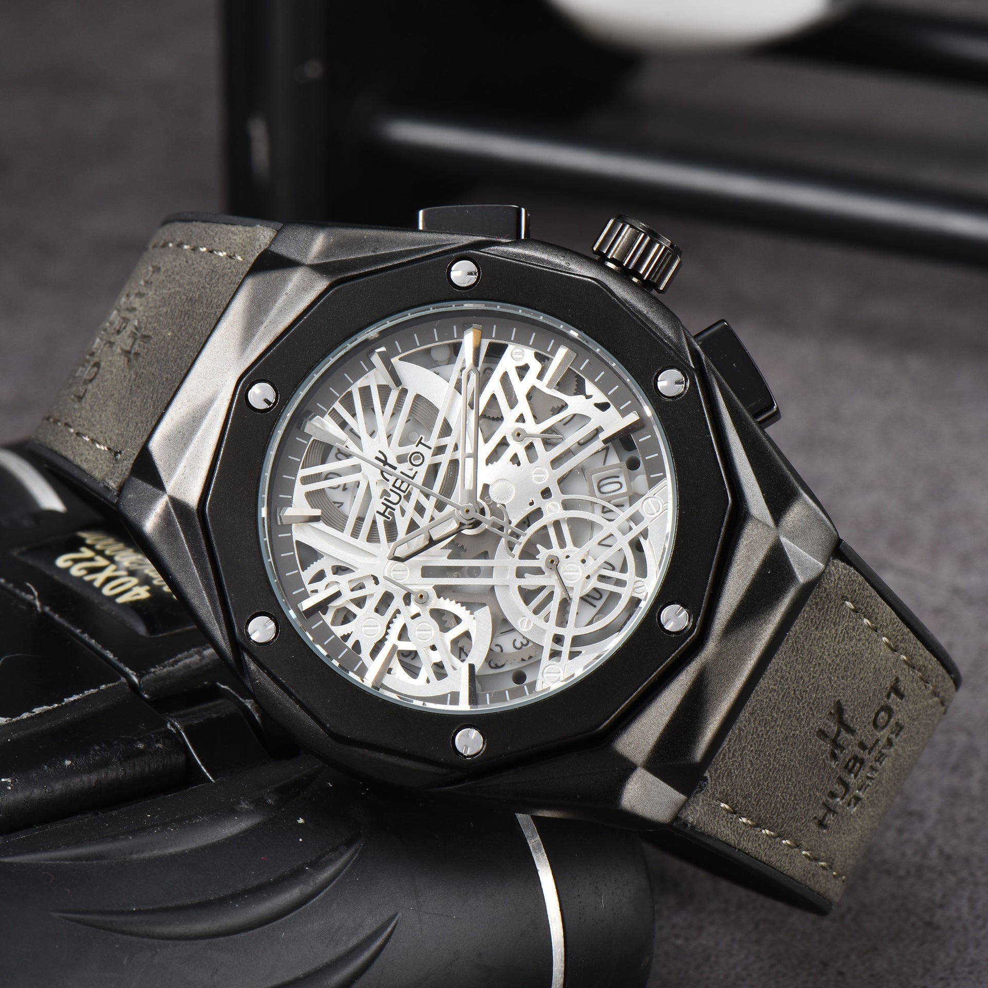 Hollow Chronograph Quartz Watch with Leather/Rubber Strap