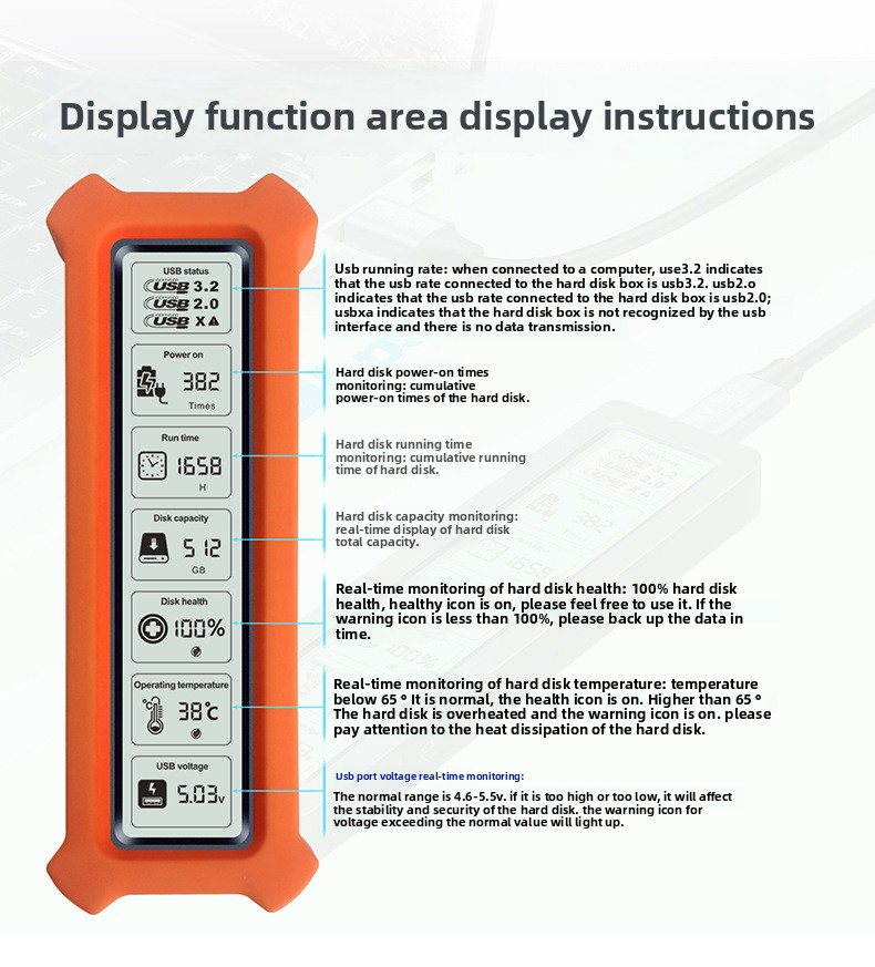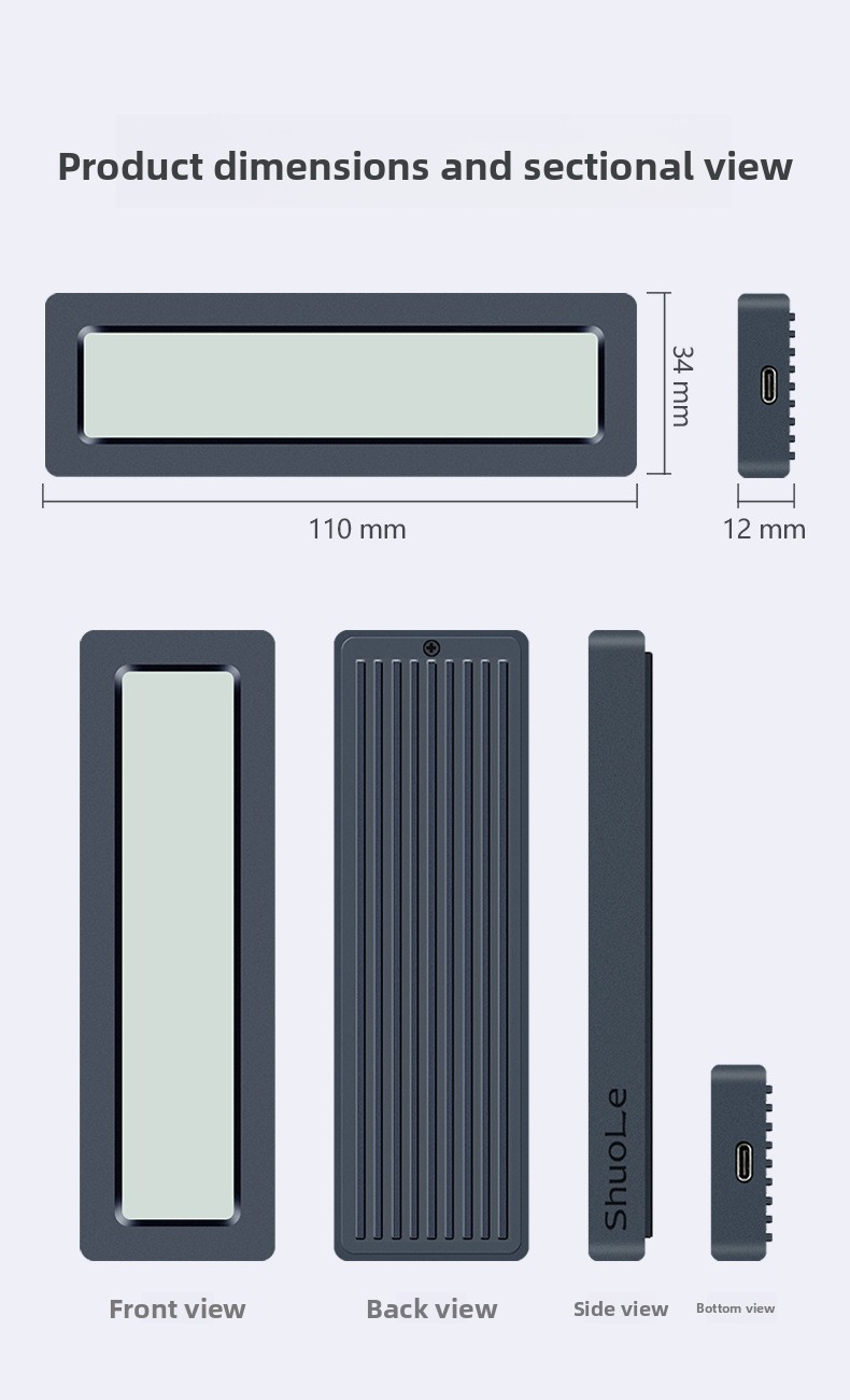 High-speed data transfer: Supports USB3.2 Gen2 Type-C interface with a transmission speed of up to 10Gbps.