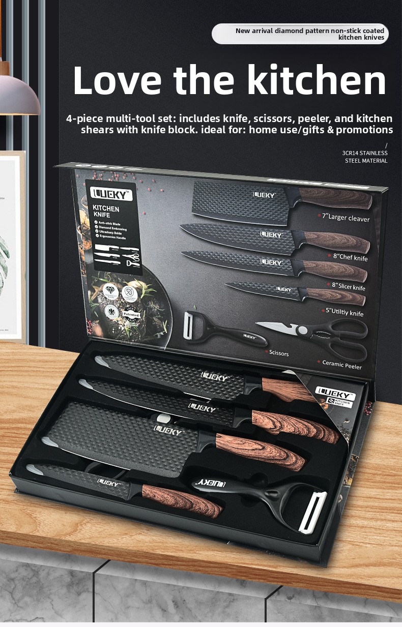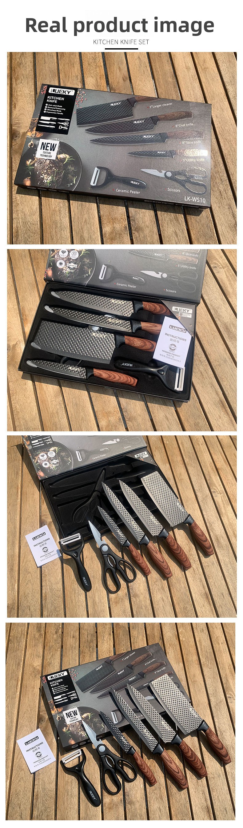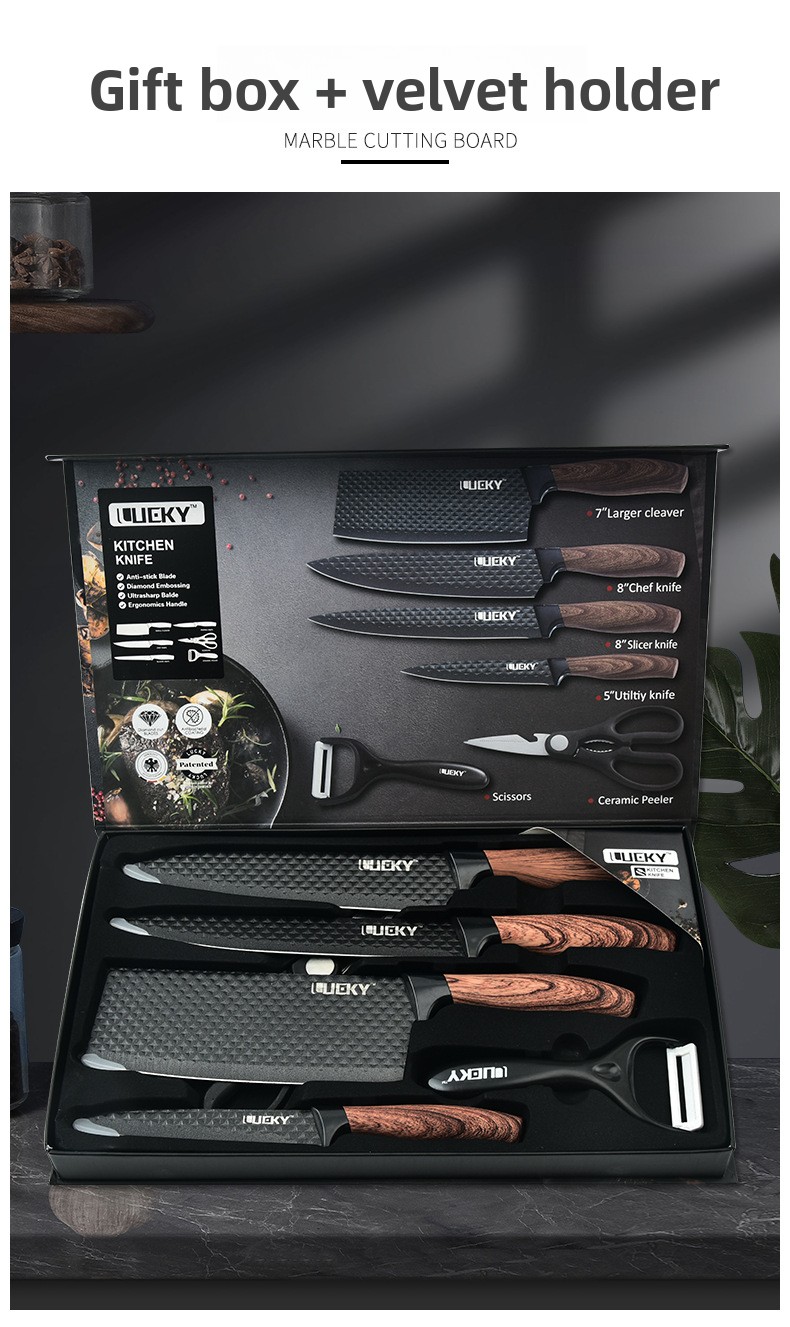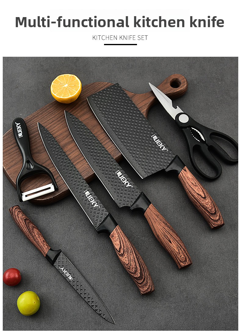 6-Piece Set: Includes chef’s knife, scissors, and other essential kitchen knives for versatility.