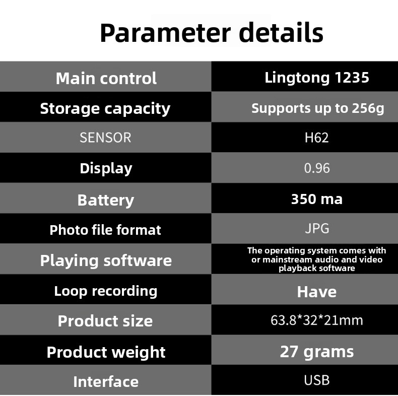 Built-in Screen: Features a 0.96-inch LCD screen for easy framing and playback.