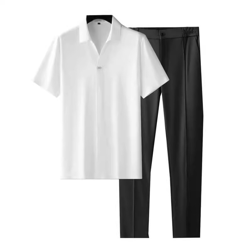 Two-piece Set: Includes a short-sleeve shirt and matching trousers.