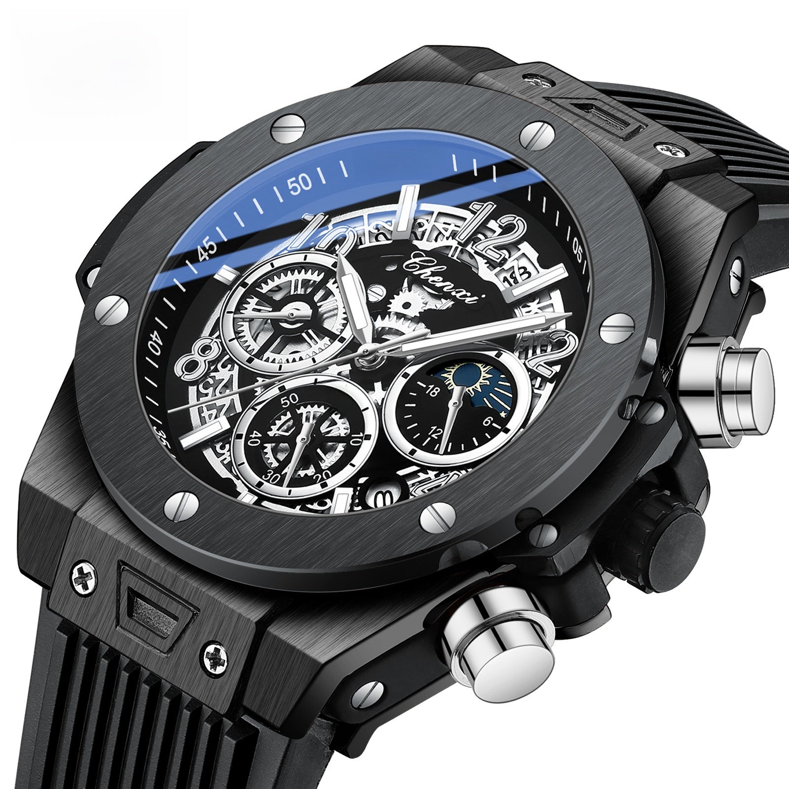Multifunctional Men's Quartz Watch with Moon Phase and Luminous Display
