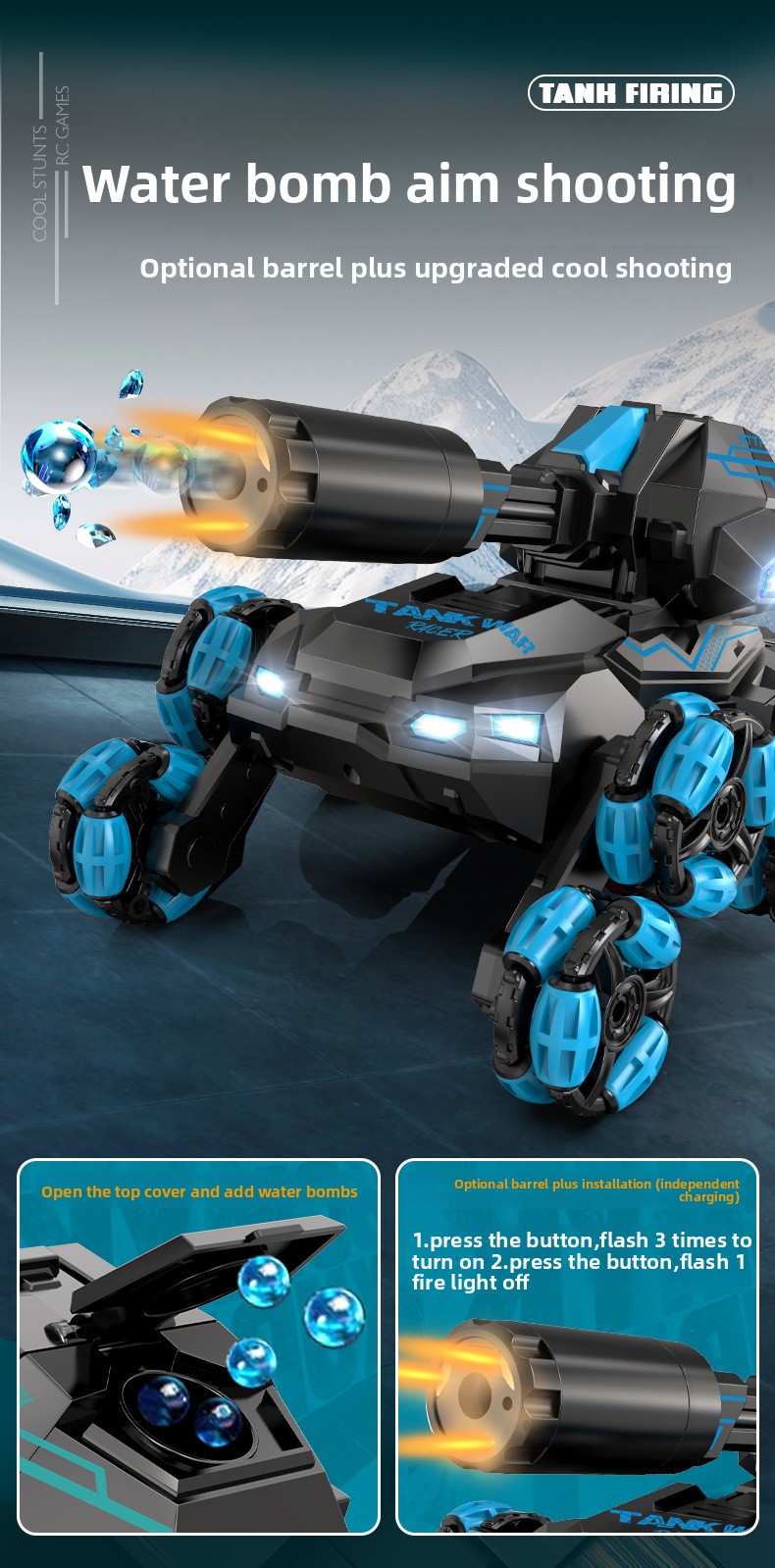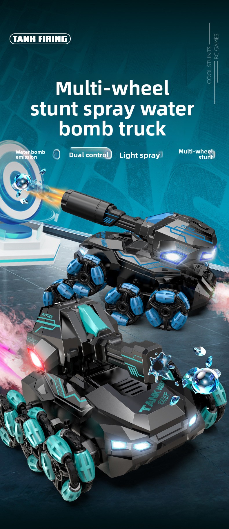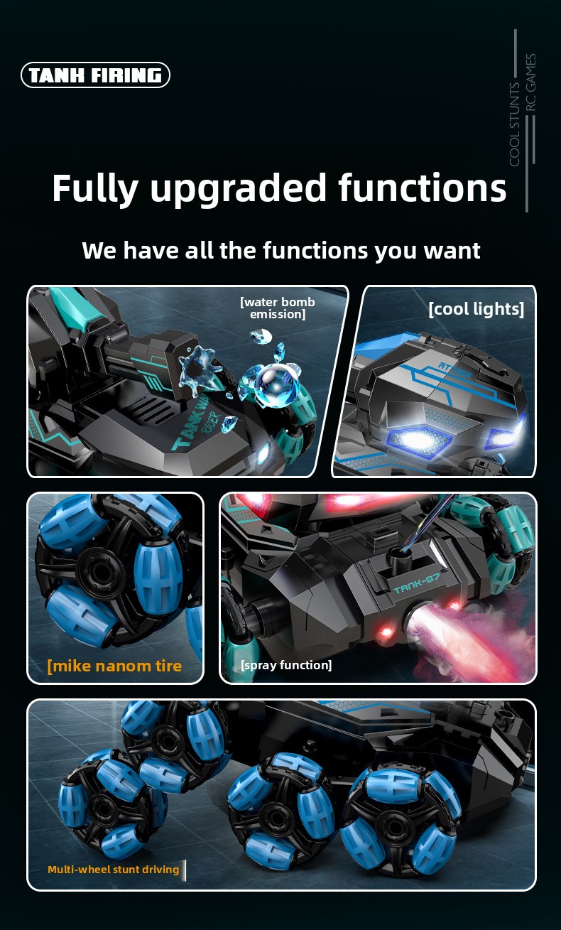 Water Bomb Launch & Spray Function: Interactive features for engaging playtime.