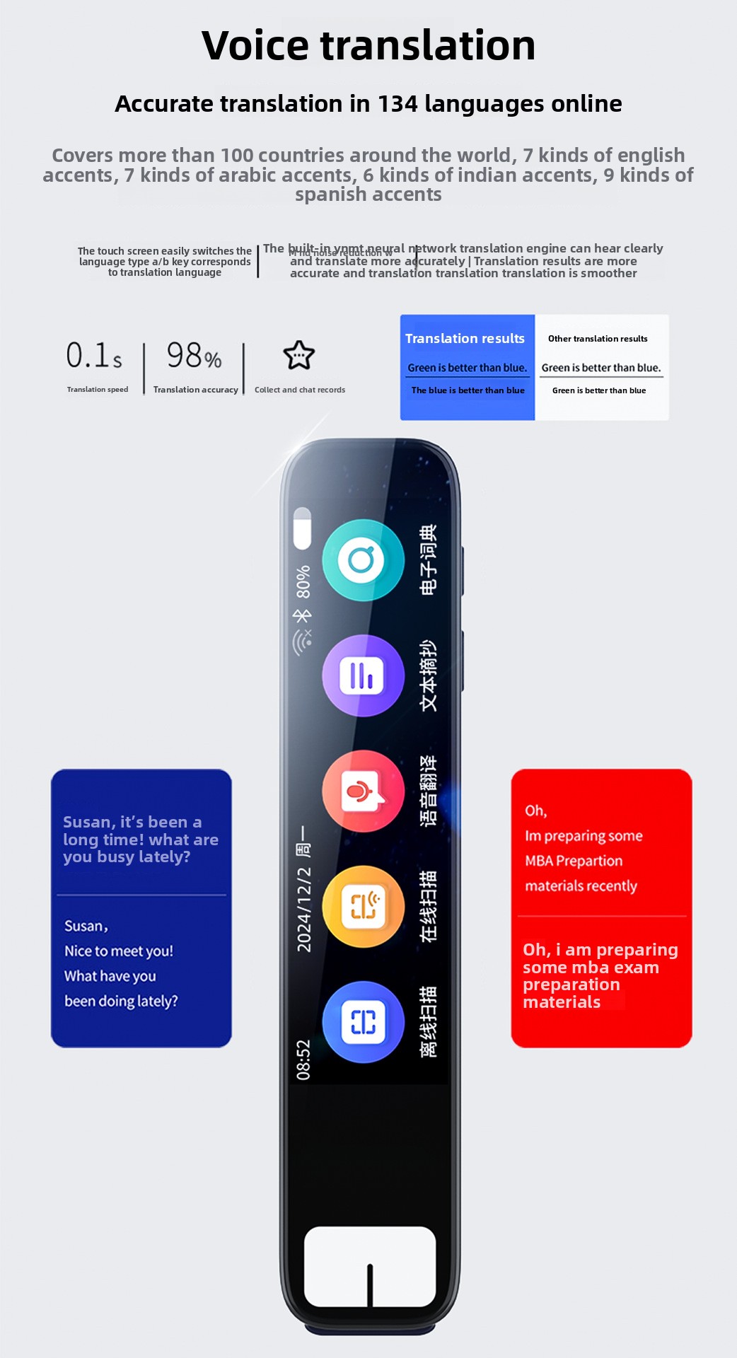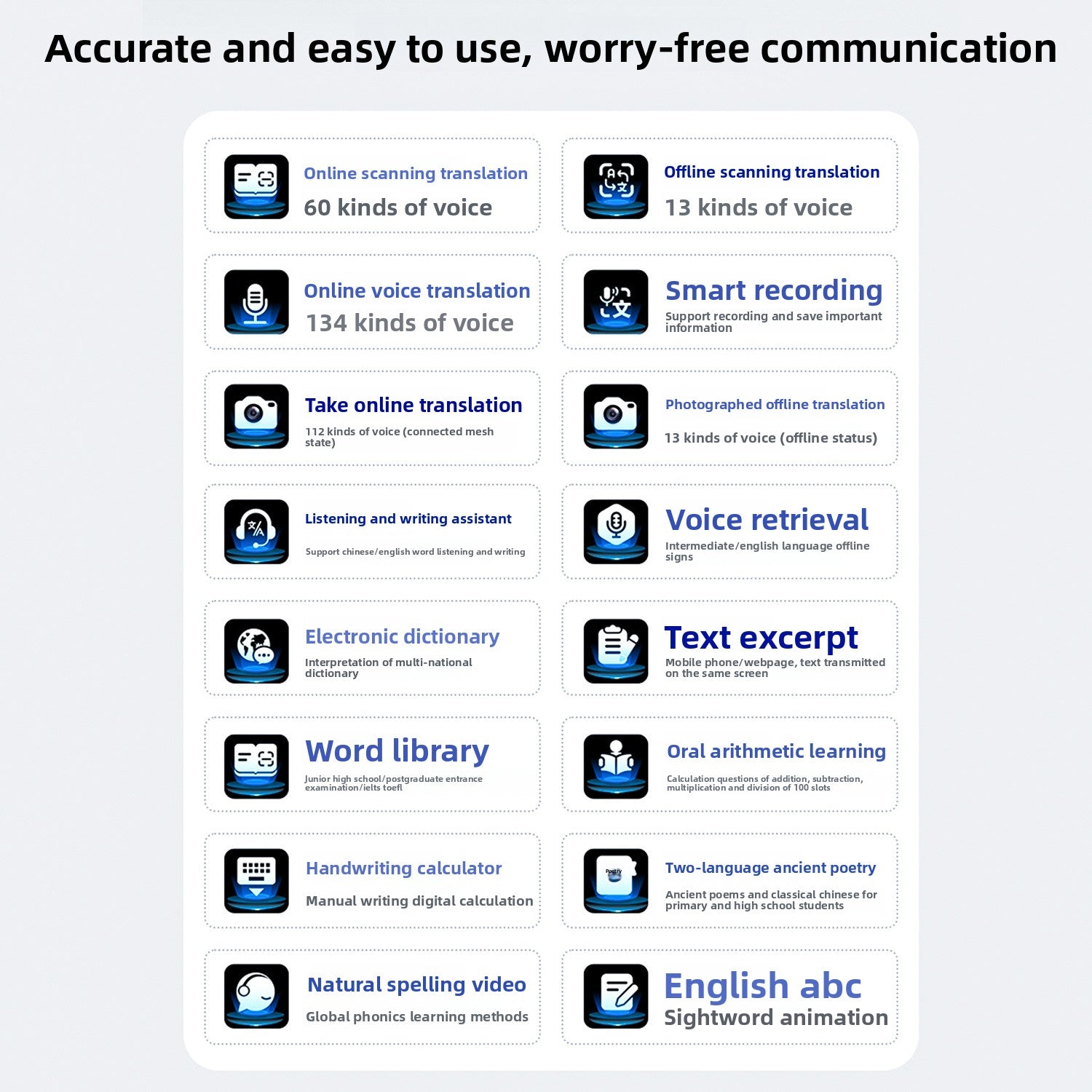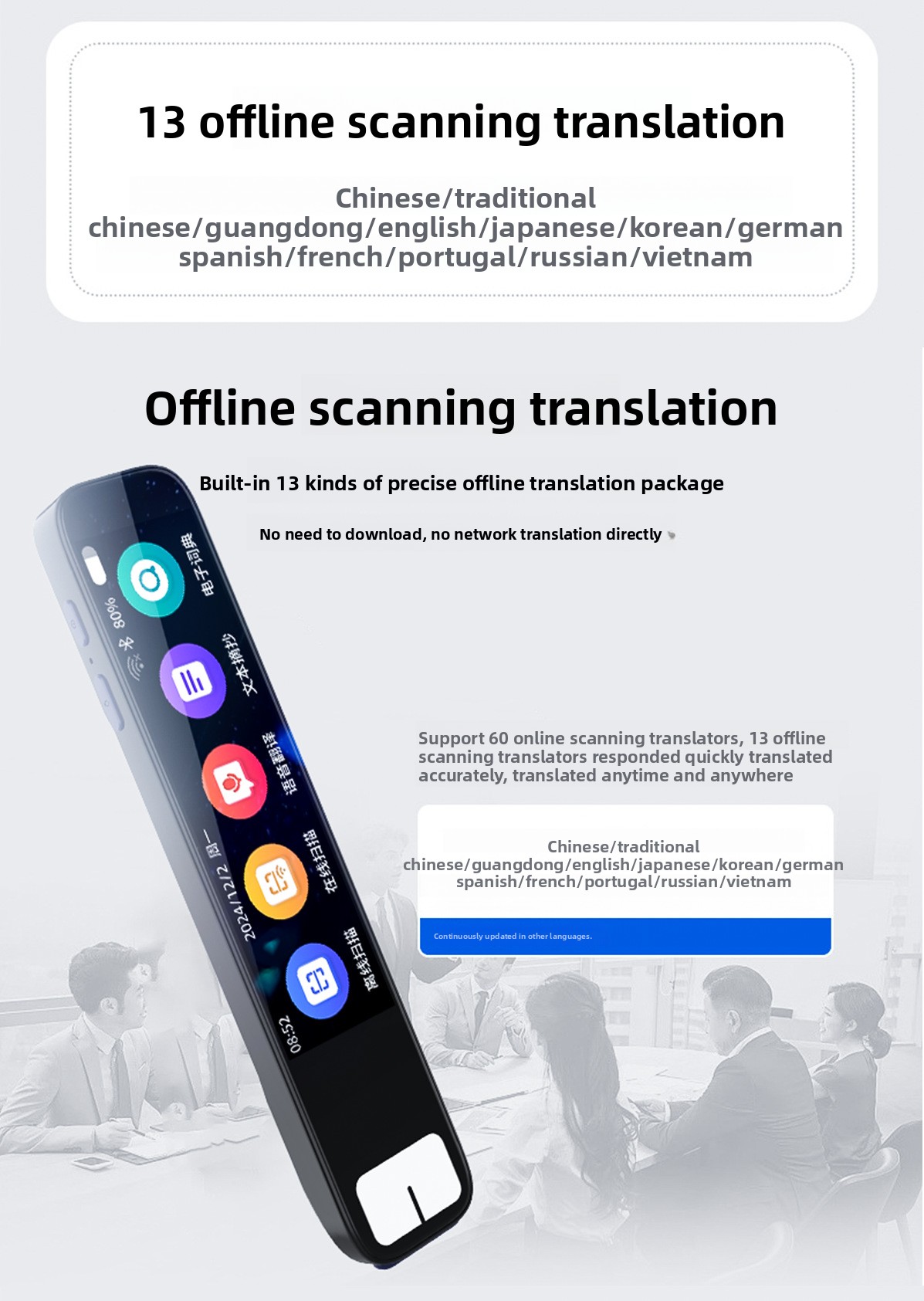 Multi-language Support: Offline translation for 13 languages (Chinese, English, Japanese, Korean, Russian, German, Cantonese, Malay, etc.), online scanning for 60 languages, and voice translation for 134 languages.