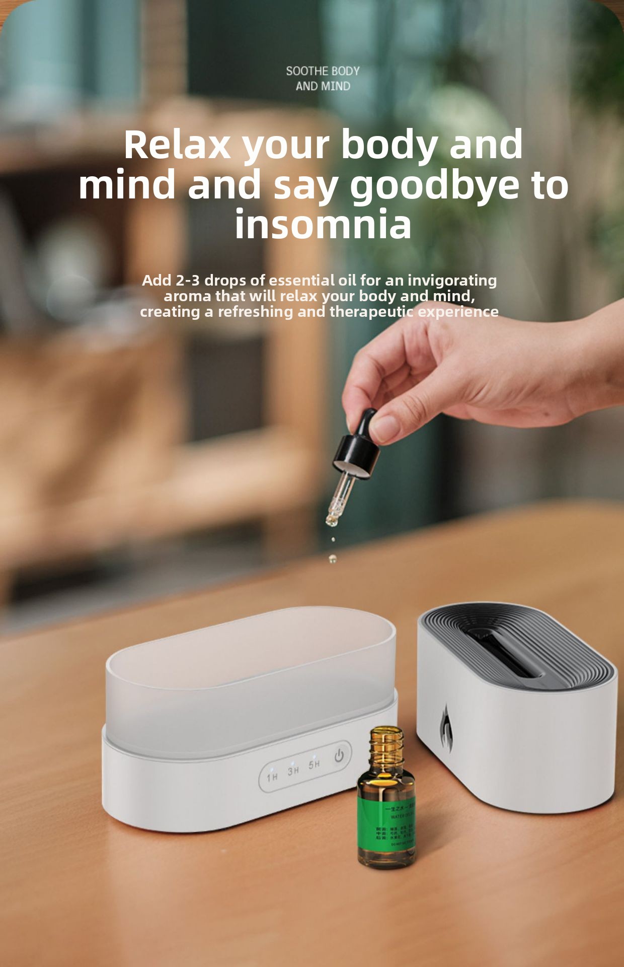 Aromatherapy Function: Doubles as a humidifier and essential oil diffuser for relaxation.