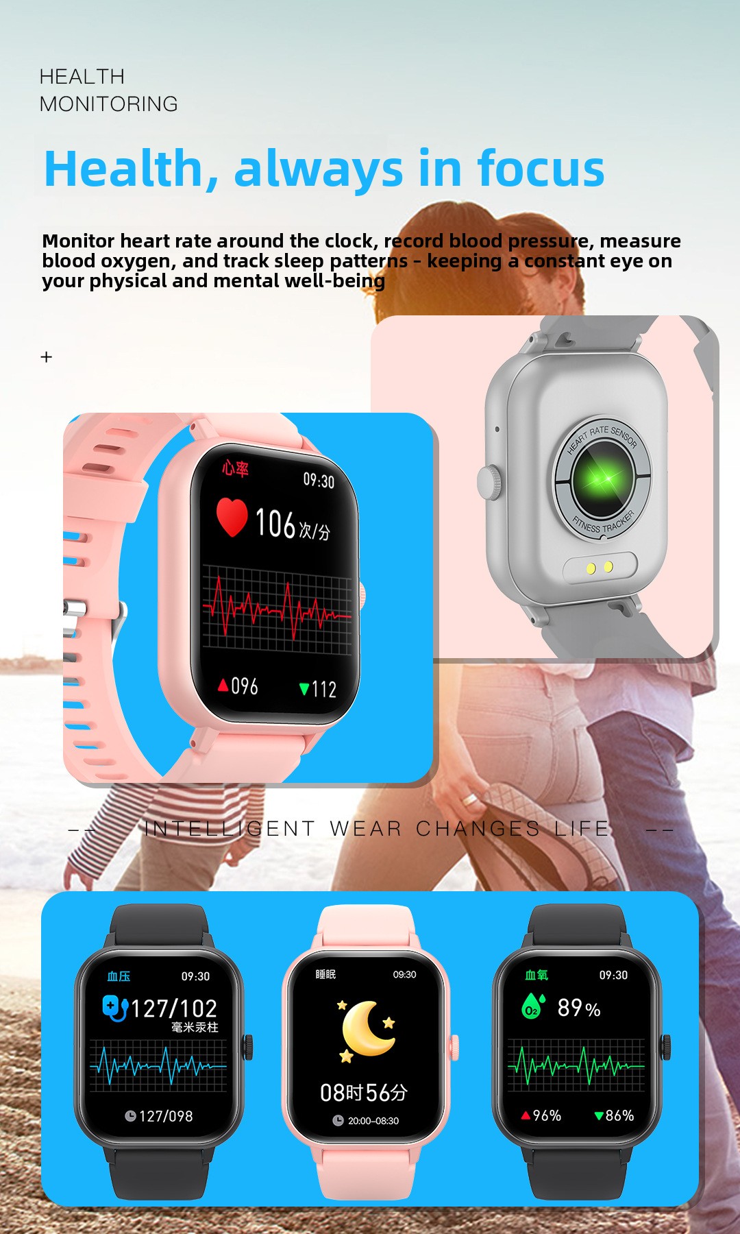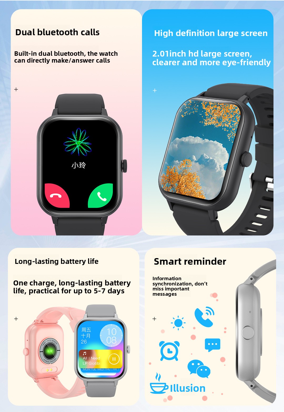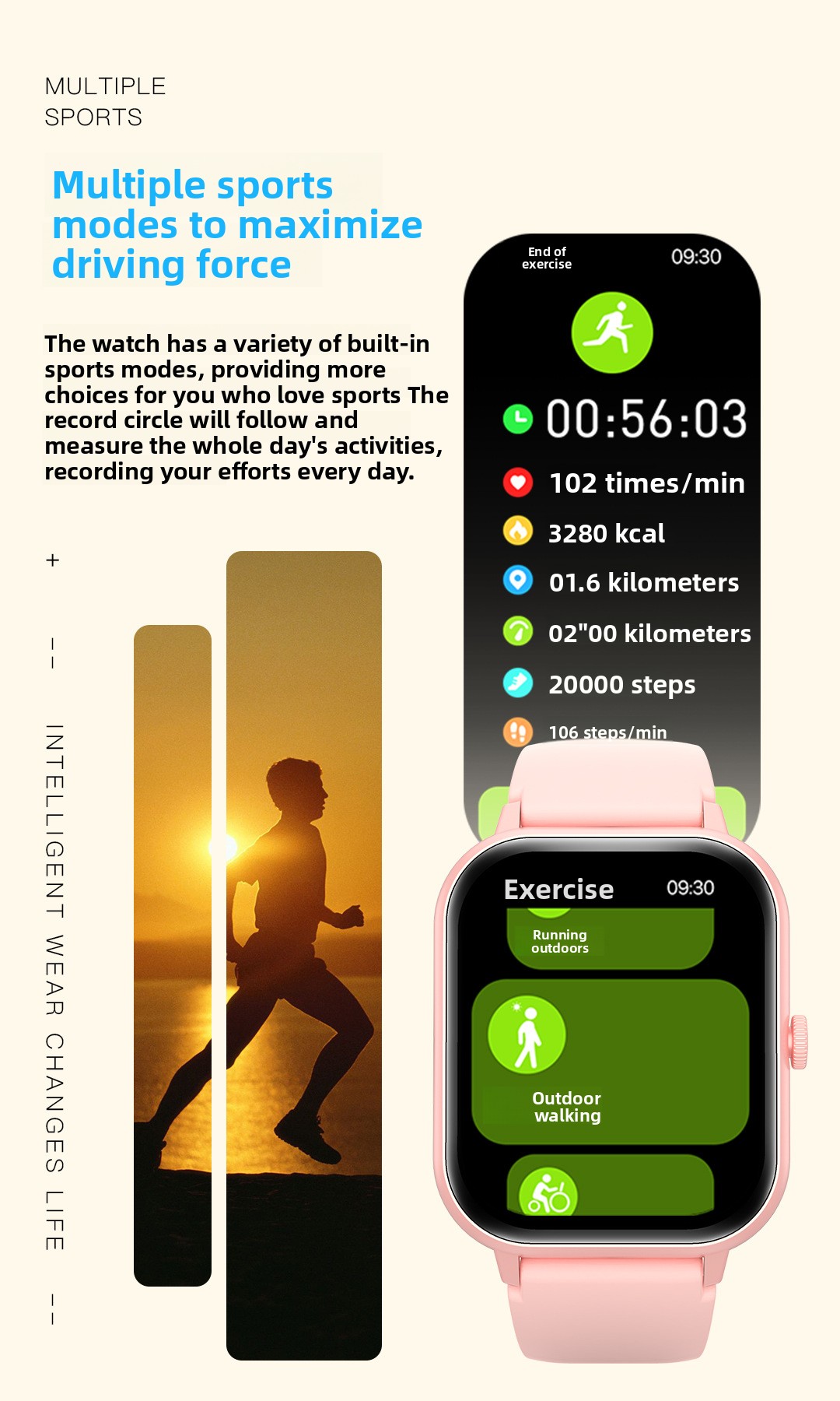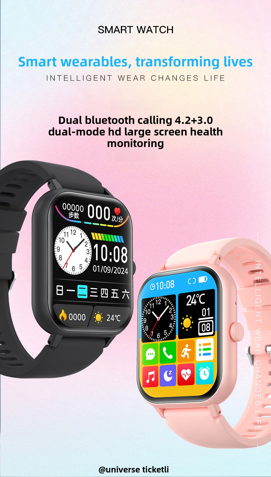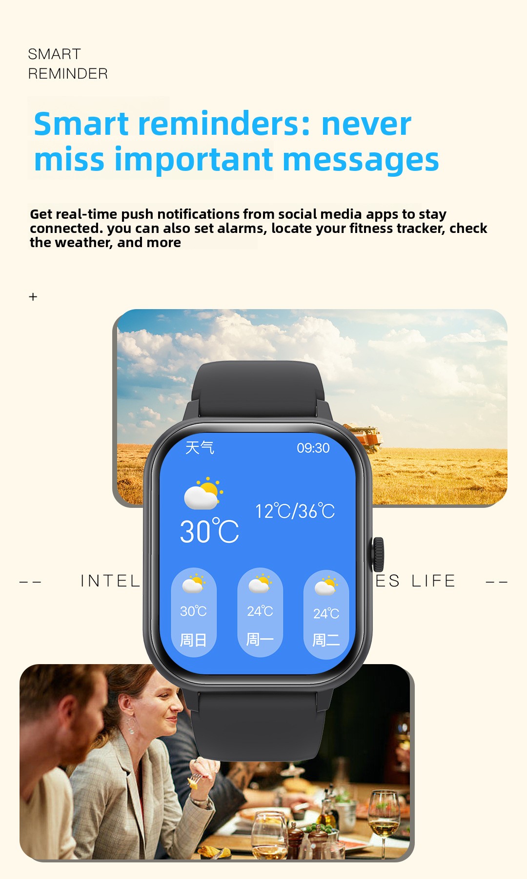 Functions: Step counting, Bluetooth calls, smart reminders, remote selfie