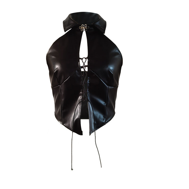 Strappy Backless PU Sleeveless Vest