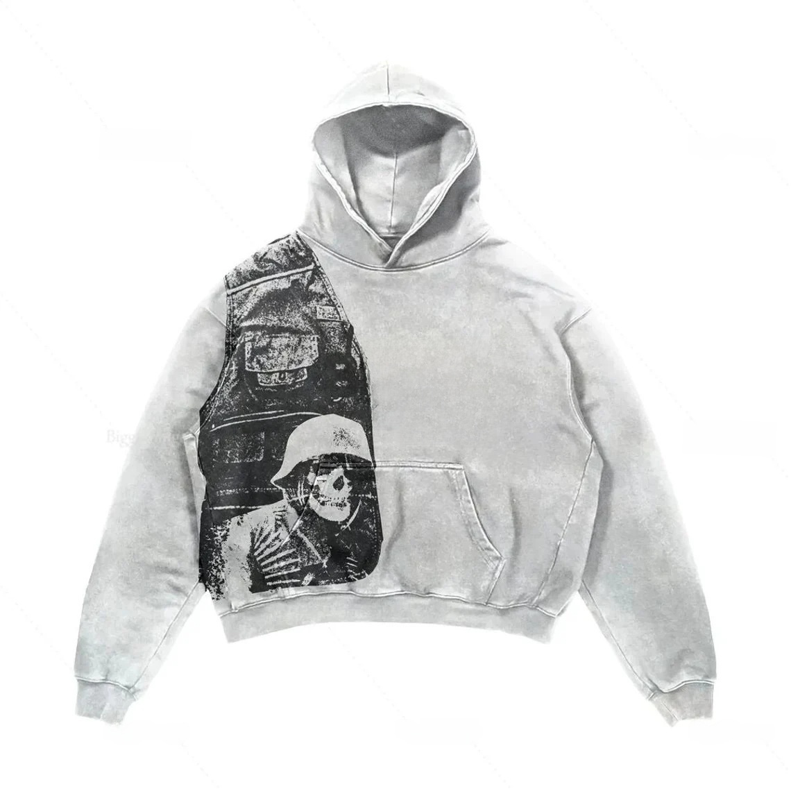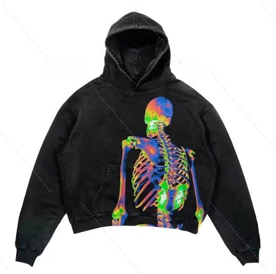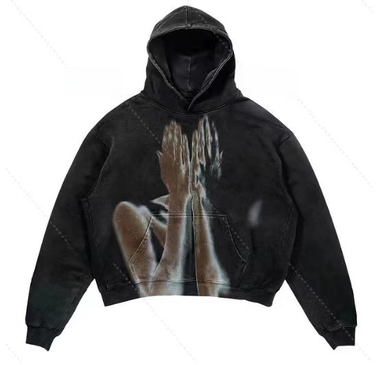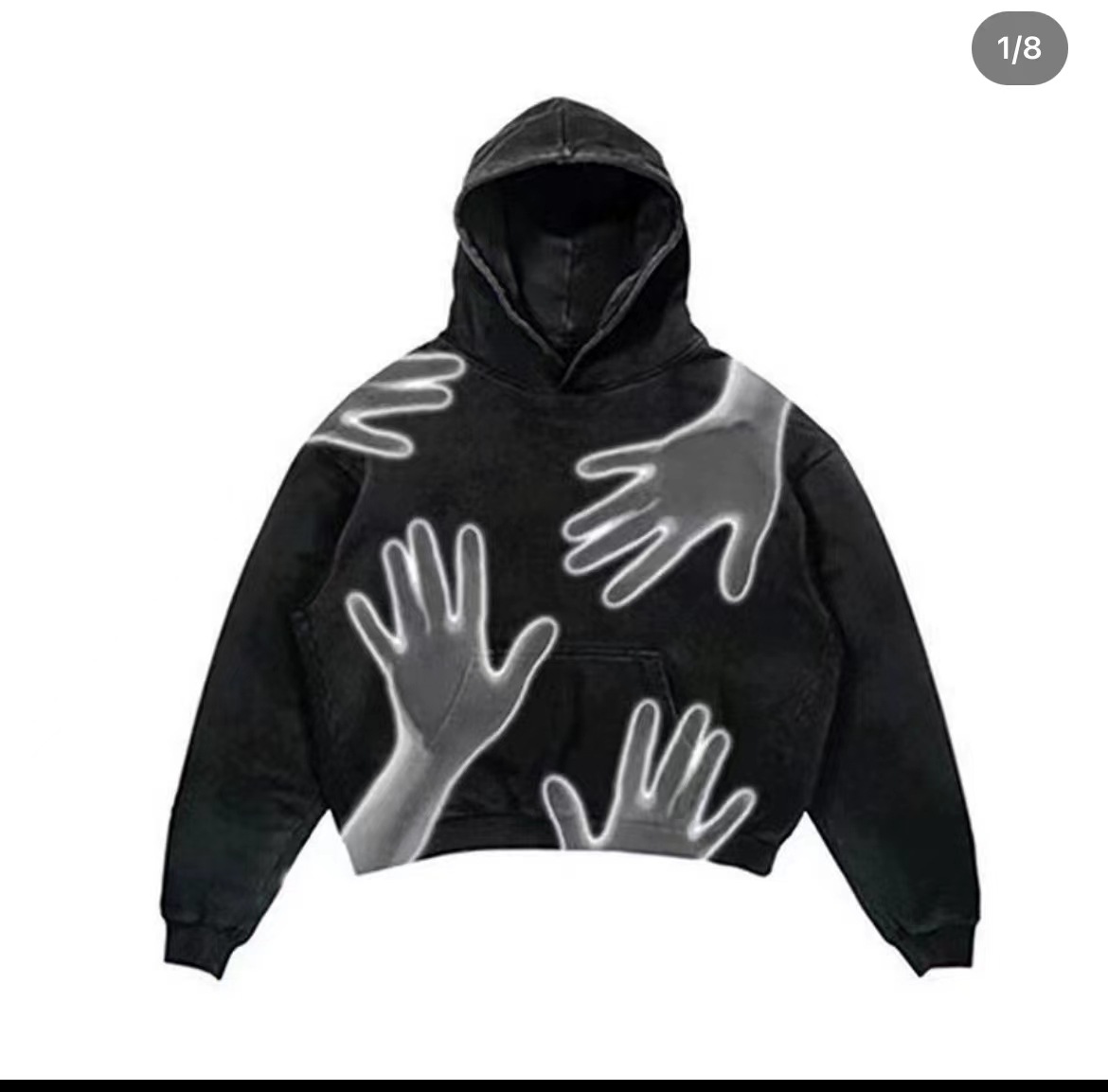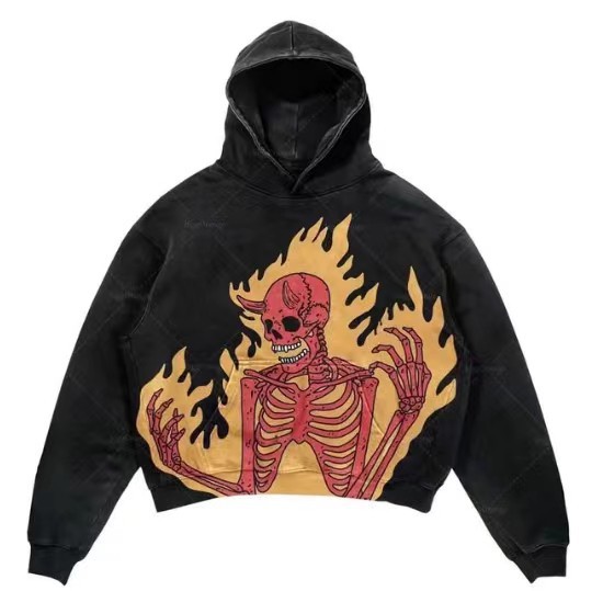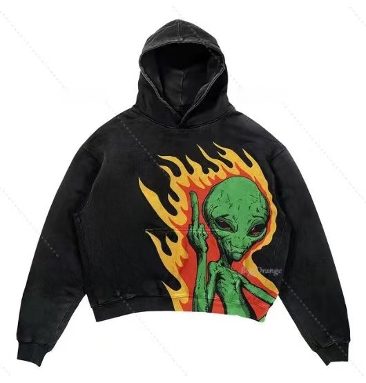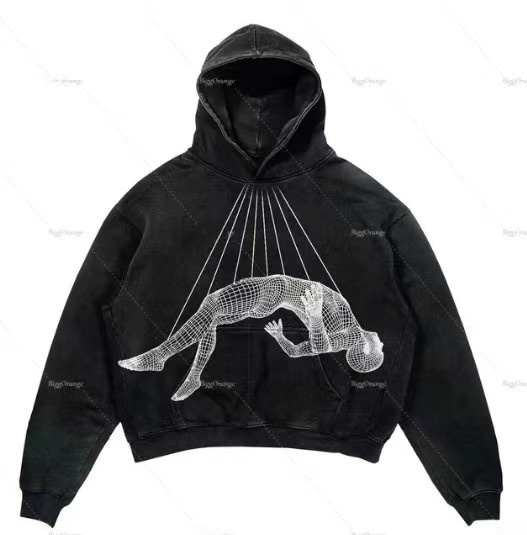 The hoodie has a comfortable hooded design, suitable for casual wear and providing warmth.