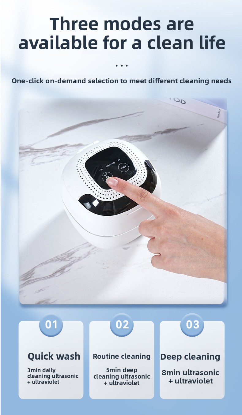 Multifunctional Cleaning: Combines ultrasonic and UV cleaning for thorough sterilization.