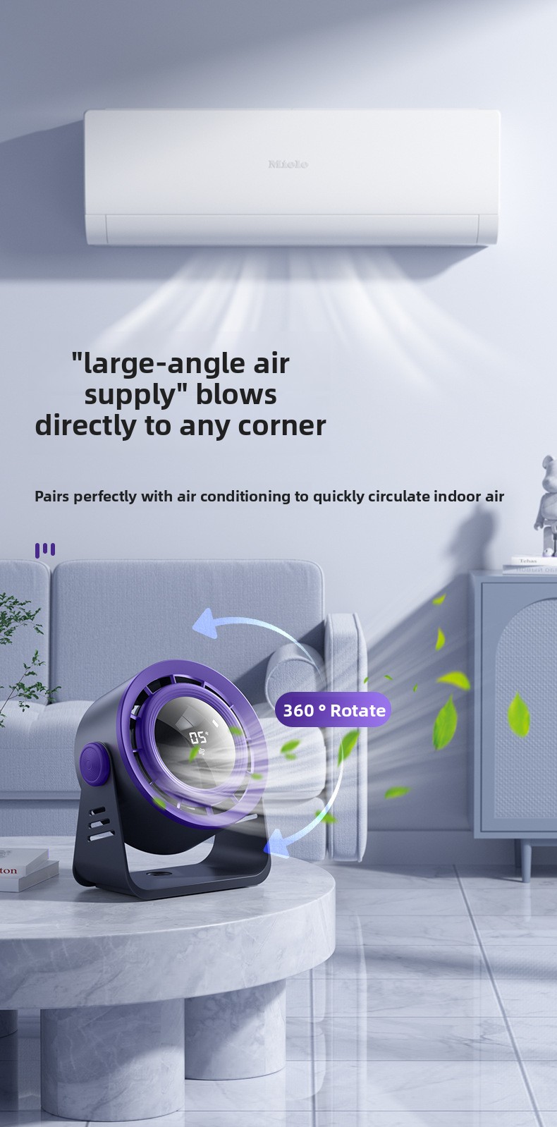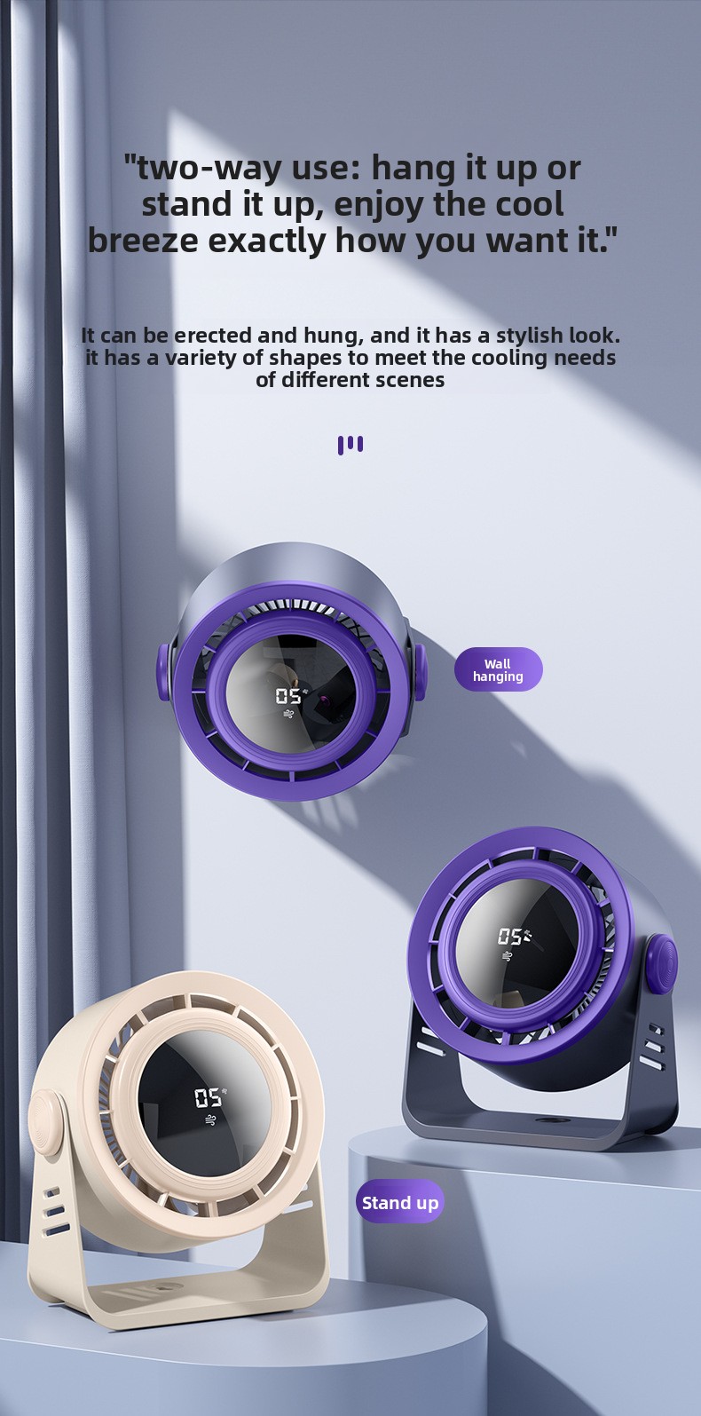 3-Speed Settings: Adjustable airflow with 3 wind speed levels.