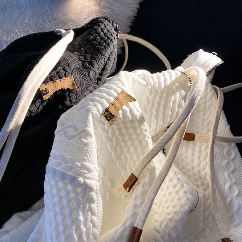 Waffle Pattern Zipper Jacket - Loose Fit Retro Style