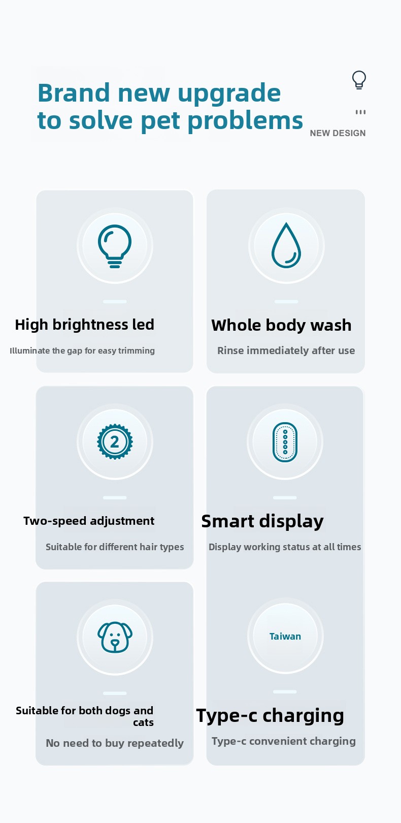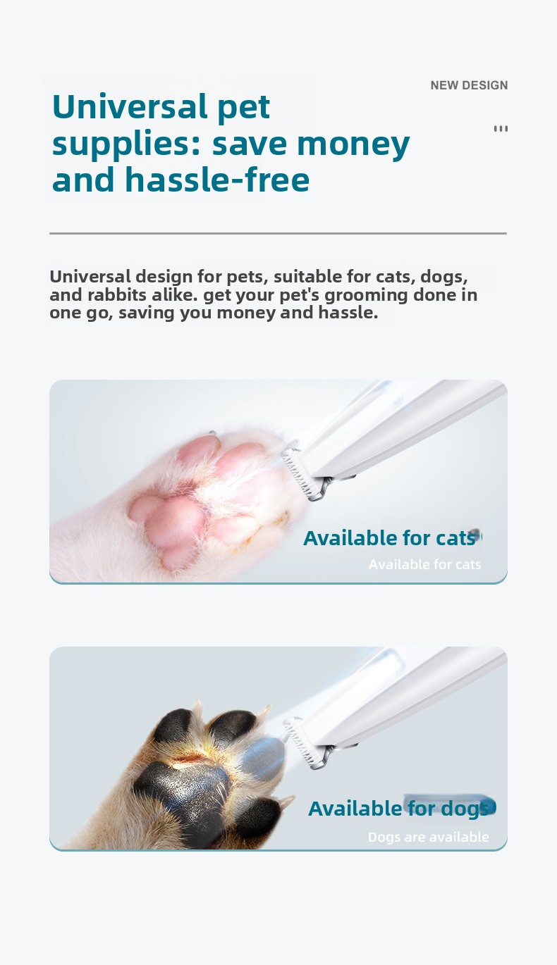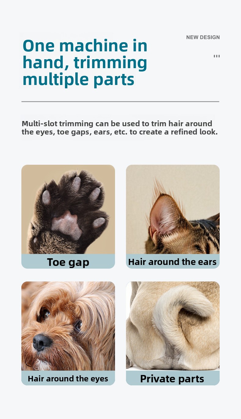 Precision Trimming: Ideal for local trimming, especially around paws and sensitive areas.
