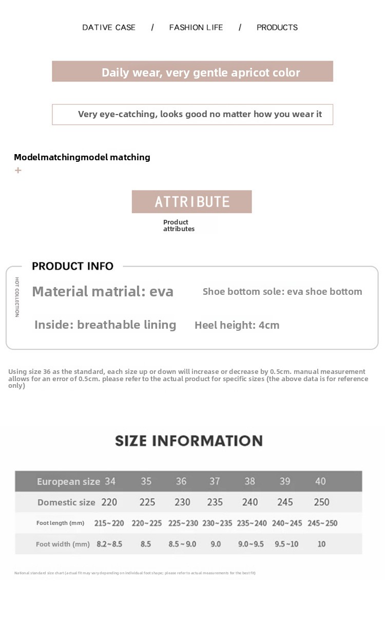 Versatile Design: Round toe and low heel (1-3cm) suitable for indoor and outdoor use.