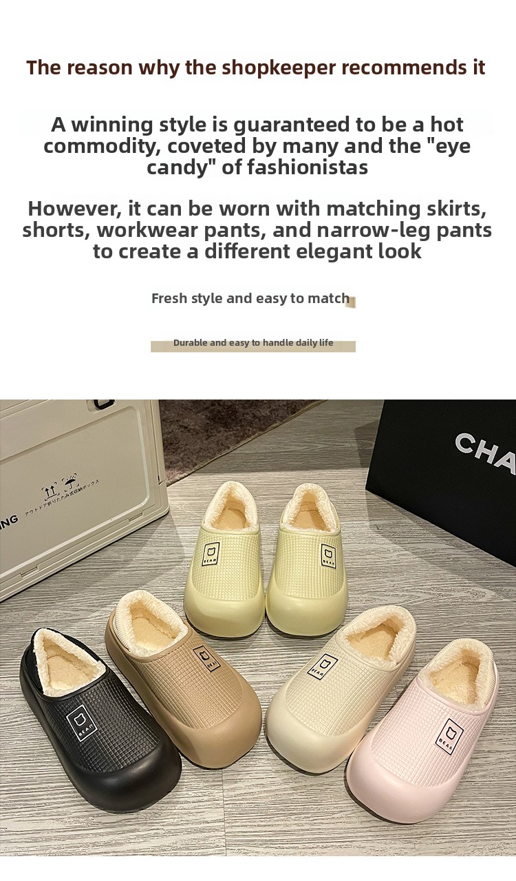Women's Warm Waterproof Cotton Slippers - Indoor & Outdoor