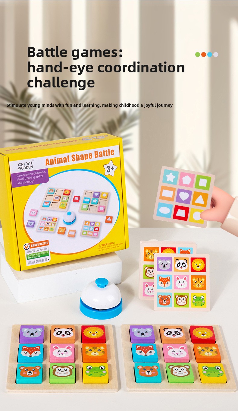 Interactive Play: Features animal shape matching blocks for engaging two-player battle games.